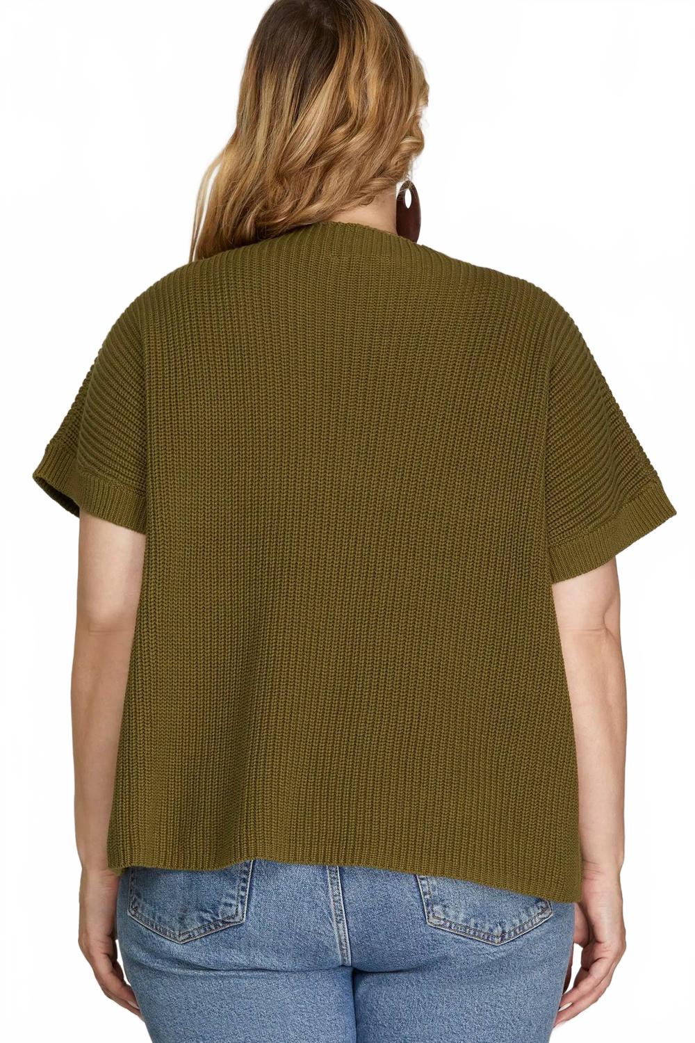 Оливковый топ с каплевидным вырезом и рукавом реглан SHE + SKY