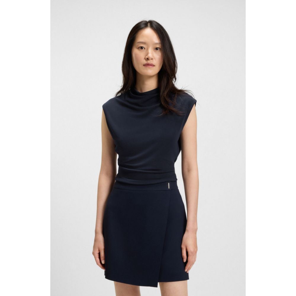 Этот женский топ BOSS из мягкой, дышащей ткани с матовой отделкой создает универсальные образы. Высокий вырез с драпировкой.