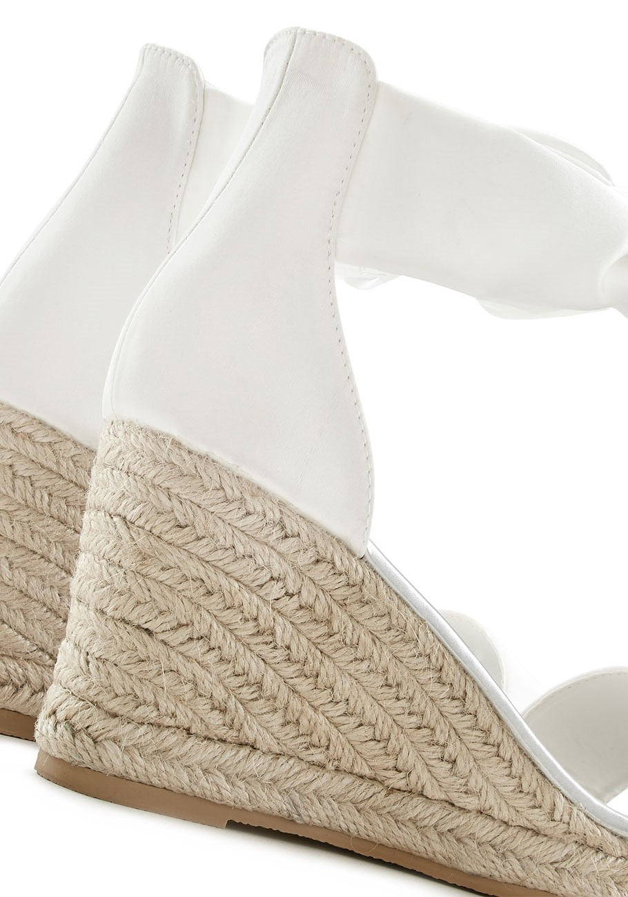 Создайте красивый и в то же время шикарный образ, надев эти босоножки на танкетке с шелковым бантом на щиколотке.