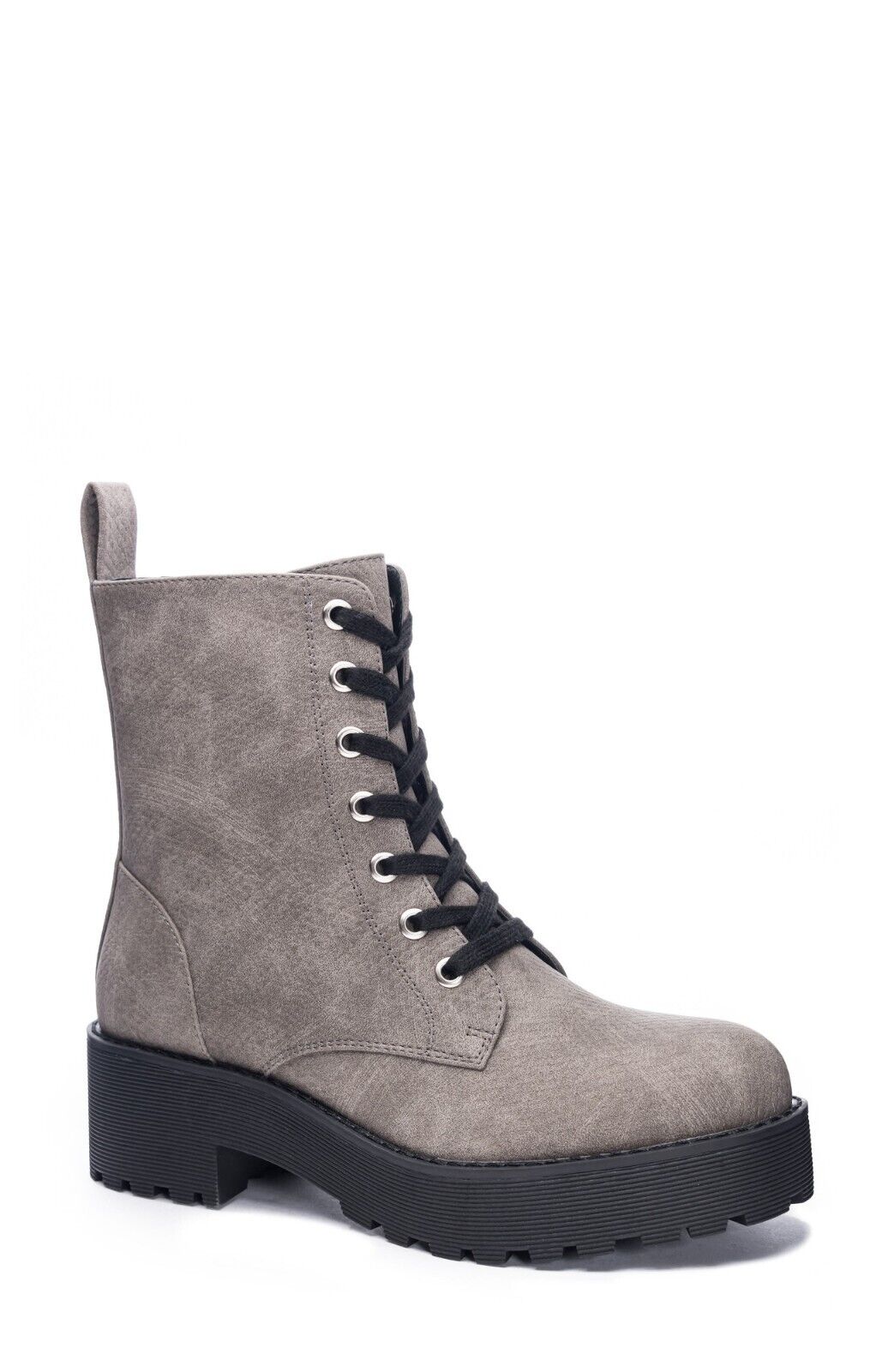 Женские боевые ботинки Dirty Laundry Mazzy, серые кожаные, блочный каблук, размер 7 (серый, 7)