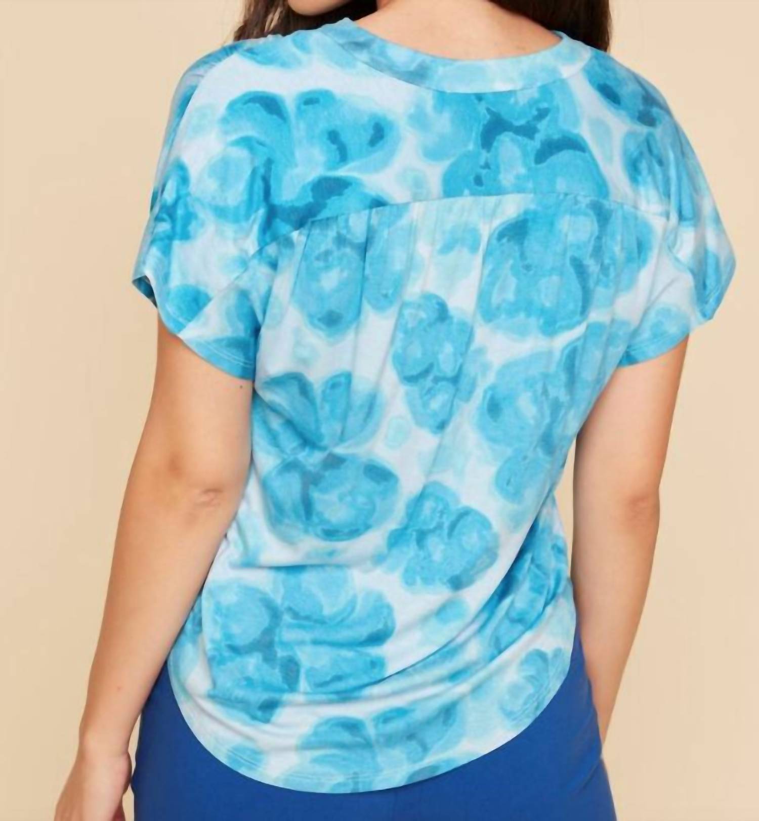 Аквамариновый топ в технике акварели Renuar, синий
