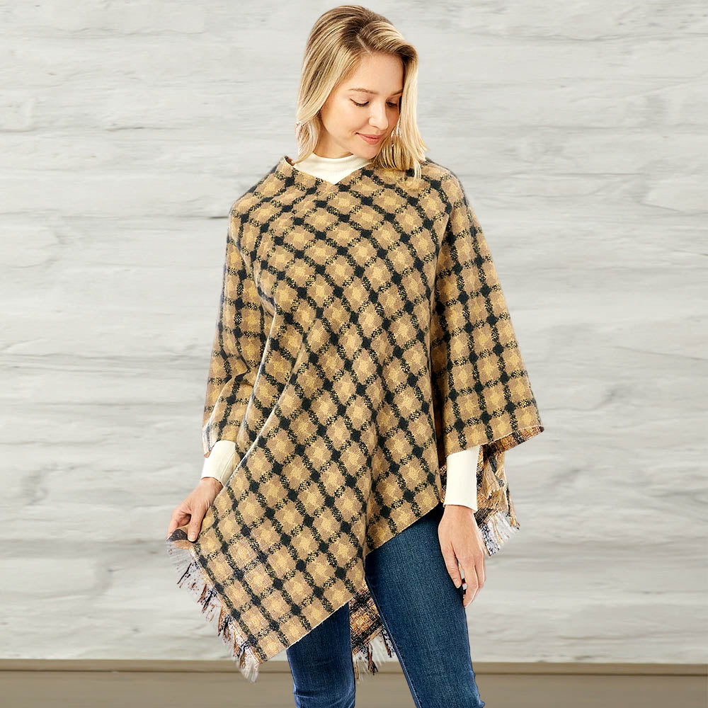Ажурный вязаный пончо TRUEDAMES, бежевый