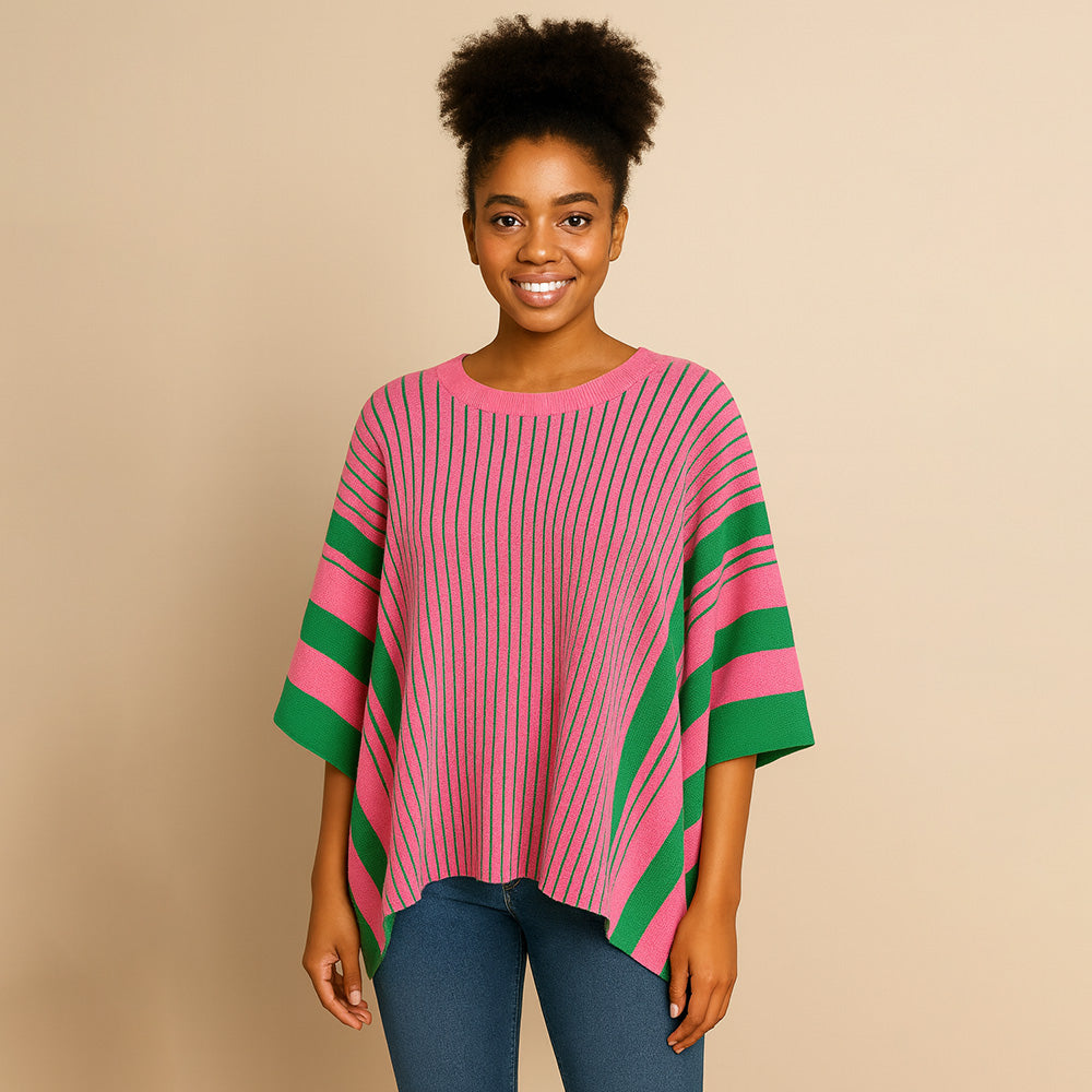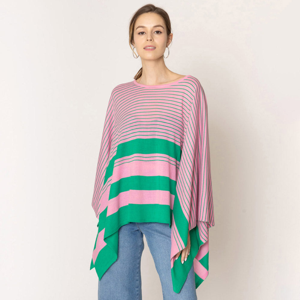 Двухцветный пончо в полоску TRUEDAMES, розовый