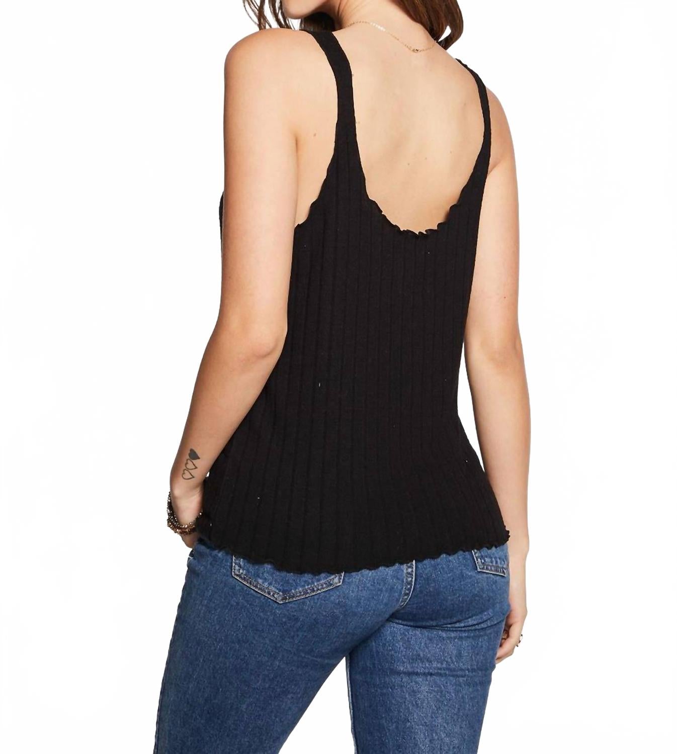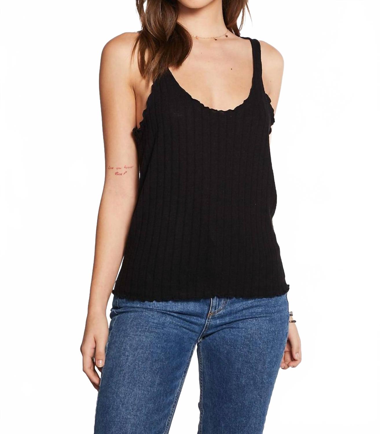 Черный топ с двойным вырезом и ребристой кромкой Chaser