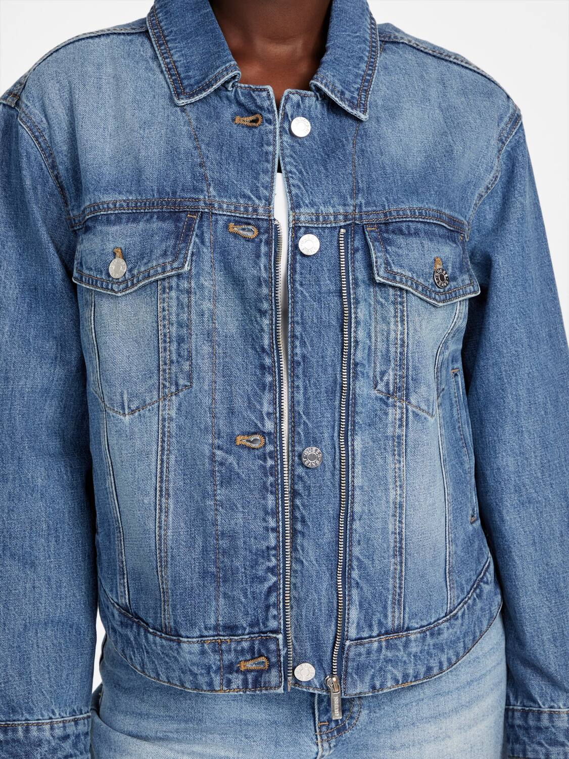 Сери Джинсовая куртка на молнии Guess Factory, Light Wash