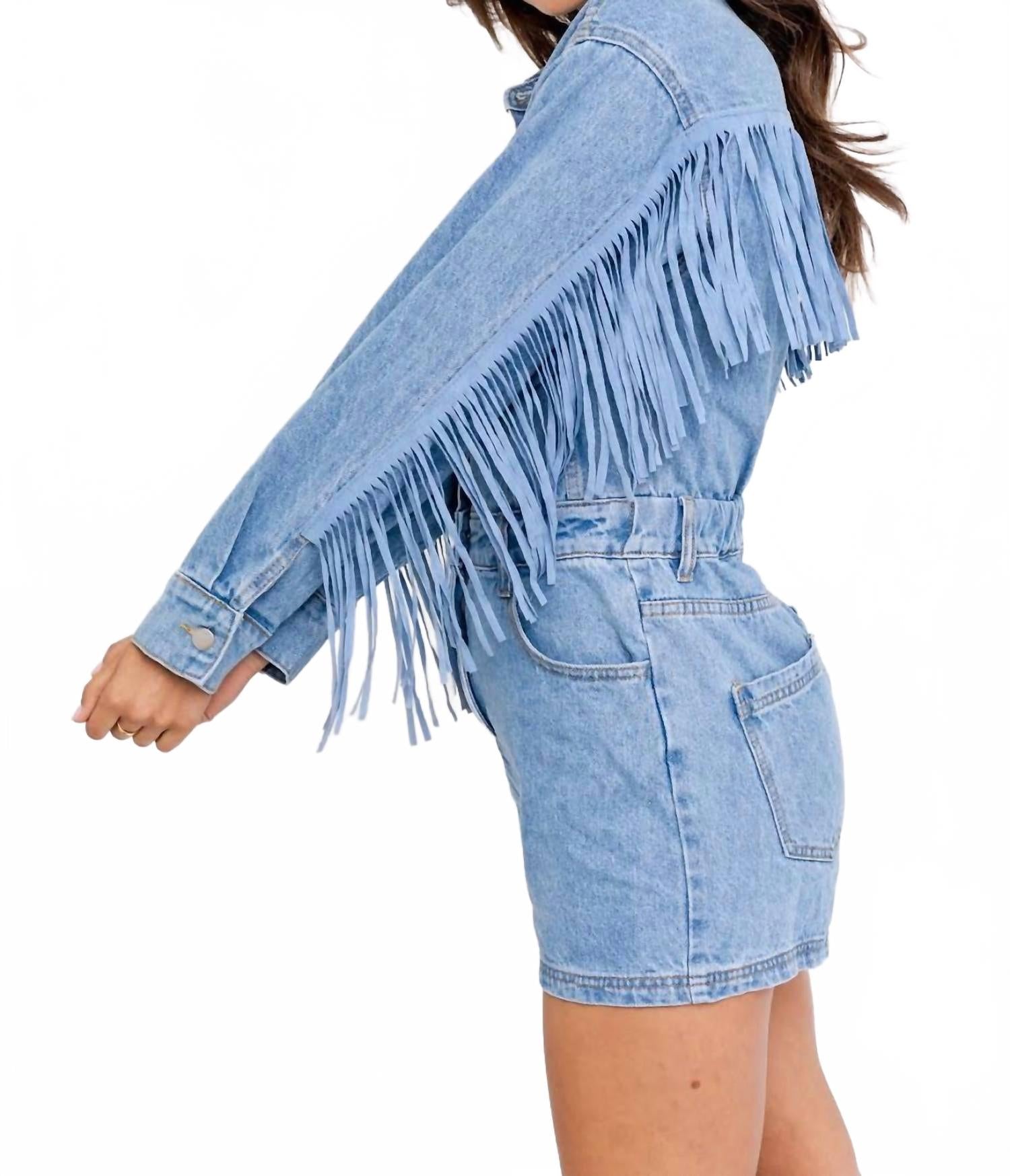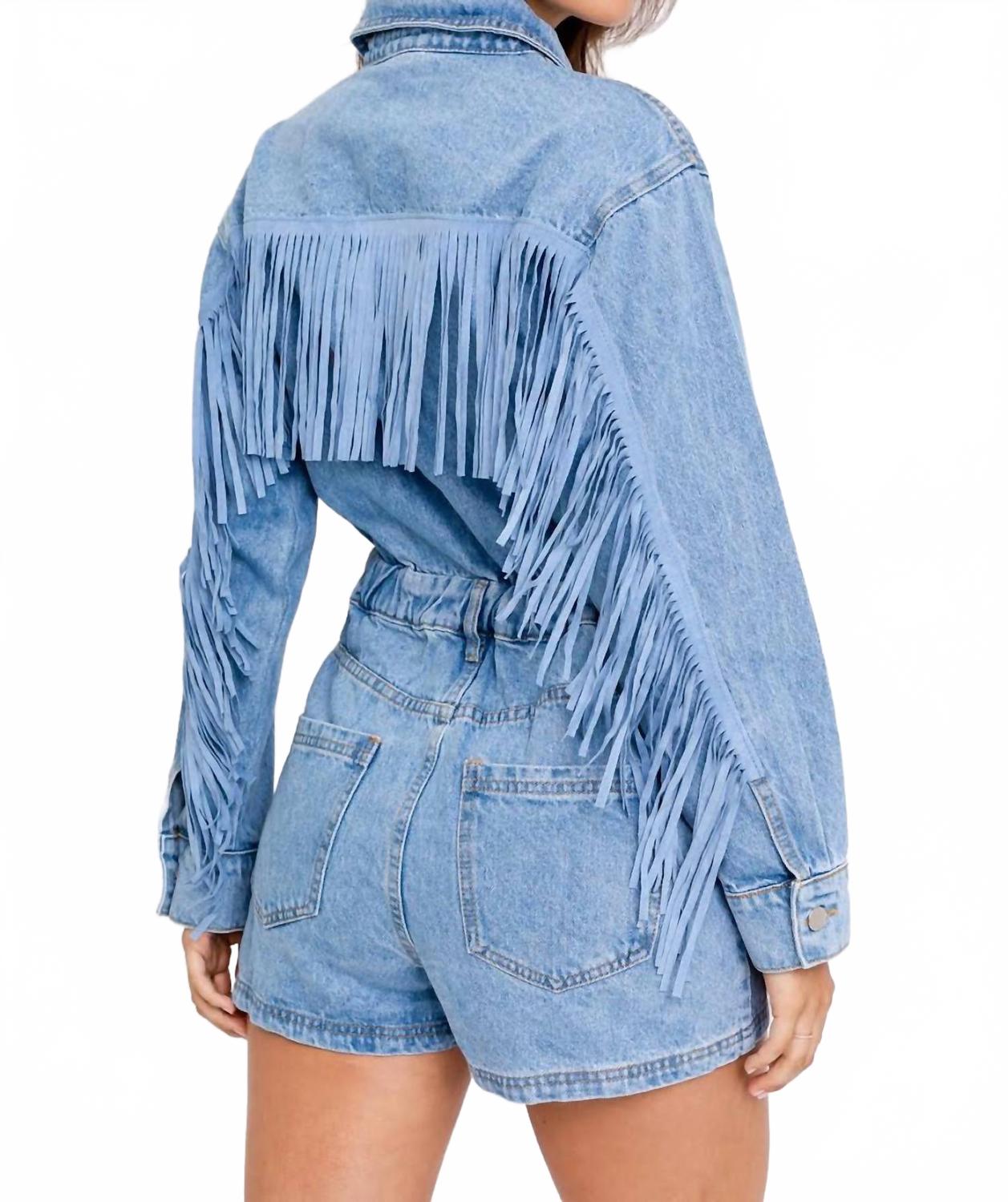 Джинсовый комбинезон с бахромой в синем цвете LE LIS