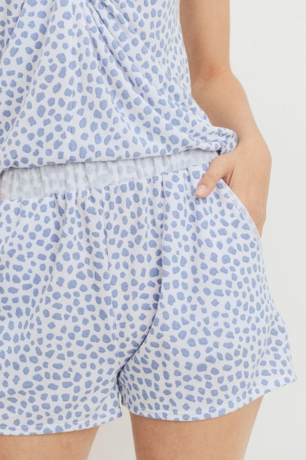 Добавьте махровые шорты с леопардовым принтом светло-голубого цвета в корзину прямо сейчас и украсьте свой летний гардероб этими шикарными, удобными шортами!