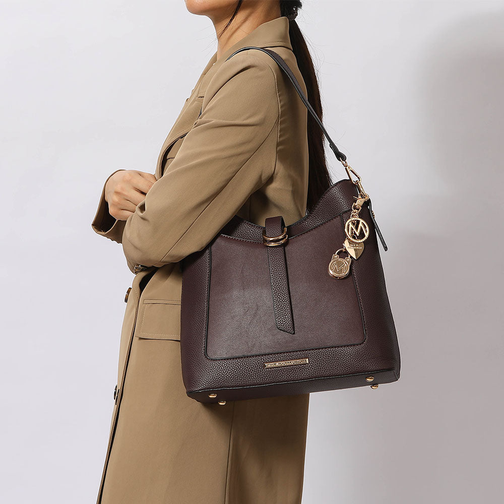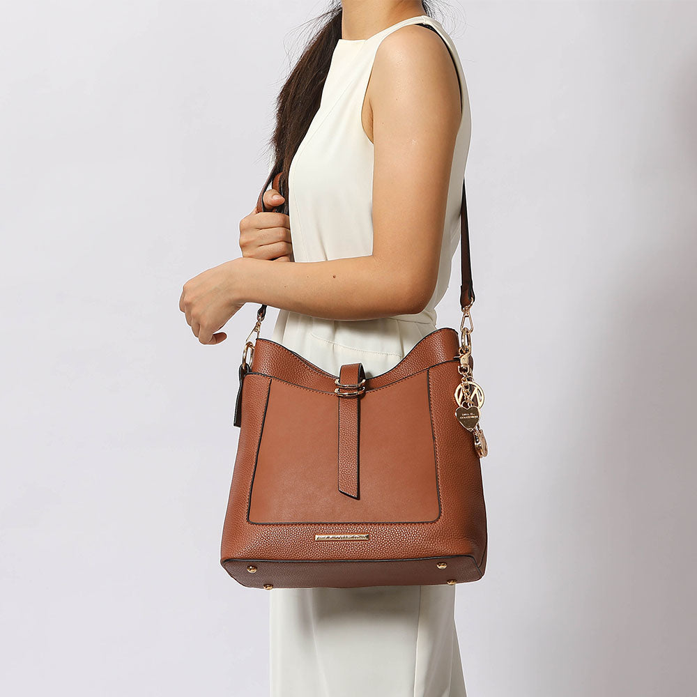 Сумка через плечо Geneva с мягким силуэтом вмещает все необходимое. Изготовленная из высококачественной веганской кожи и украшенная золотистыми украшениями, эта сумка через плечо станет вашим любимым повседневным аксессуаром. Расстегните ее, чтобы увидеть одноотдельное, полностью подбитое внутреннее пространство с двумя накладными карманами и карманом на молнии на стене. Снаружи есть передние и задние накладные карманы с застежкой-кнопкой, идеально подходящие для размещения мелких вещей. Сумка через плечо Geneva имеет передний ремень для украшения, а в комплекте идет брелок с нашей круглой эмблемой M. Вы можете носить ее на плечевом ремне или, если у вас есть настроение, прикрепите регулируемый ремень через плечо. Сумка через плечо Geneva имеет плоское основание и ножки для устойчивости.