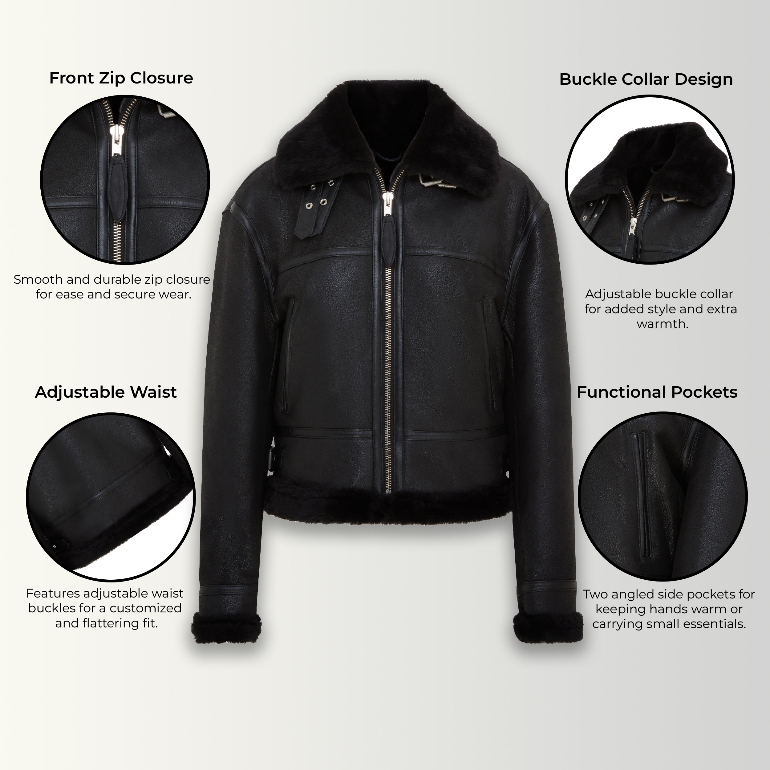 Женская черная куртка-бомбер B3 из овчины Akiak Infinity Leather