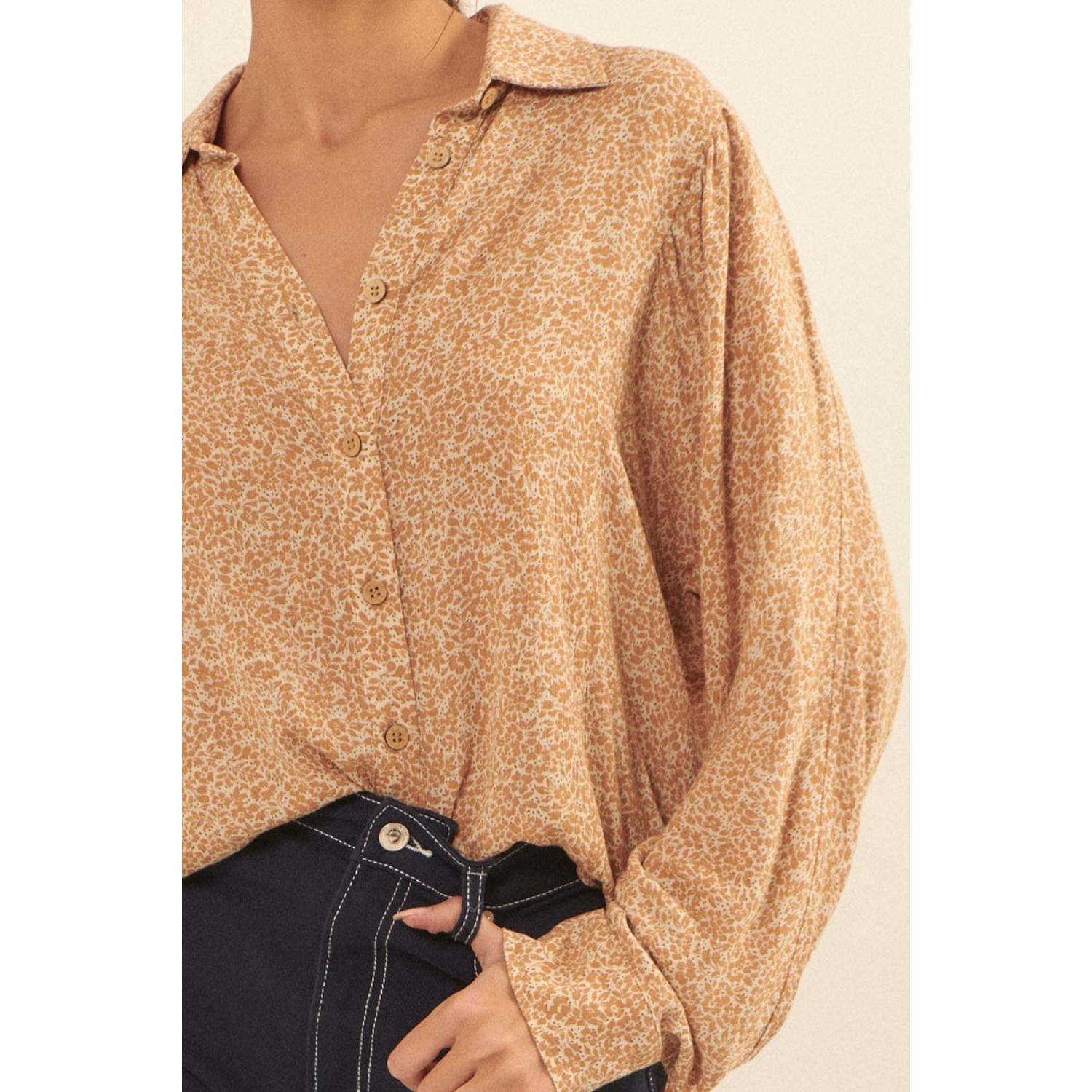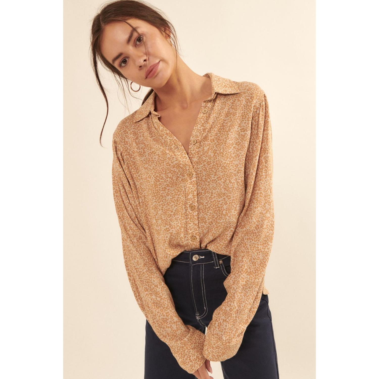 Рубашка с воротником и цветочным принтом TRUEDAMES, Caramel