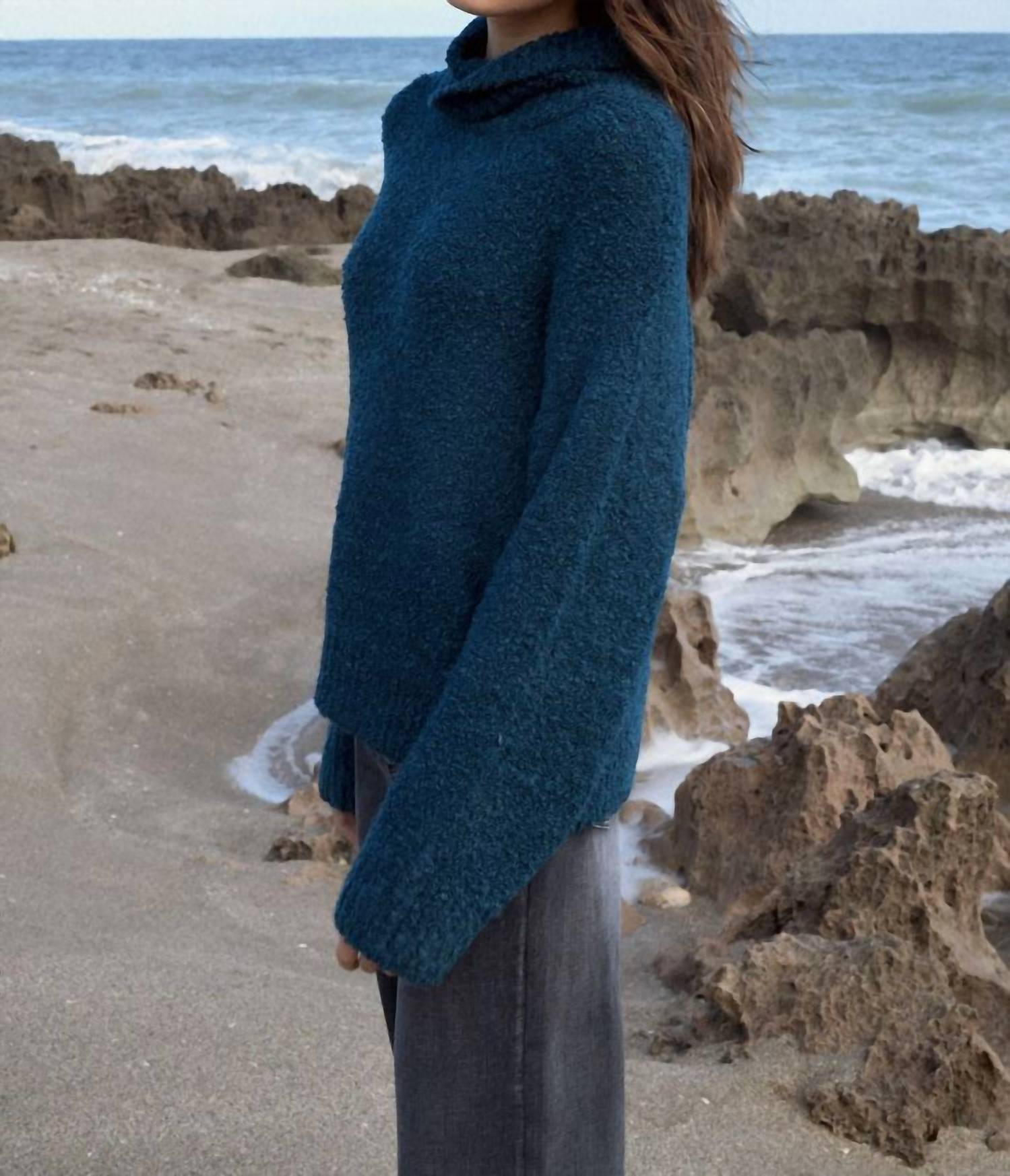 Классический базовый предмет гардероба, который должен быть в каждом гардеробе. Окутайтесь в уютные объятия свитера Margo от ELAN - идеального выбора для тех, кто ценит тепло и стиль. Этот женский свитер с длинными рукавами бирюзового цвета с уютным воротником и фактурным кроем гармонично сочетает в себе элегантность и комфорт. Изготовленный из роскошного акрила, он обеспечивает идеальную слегка свободную посадку, что делает его незаменимым в прохладные дни. Застежка - надевать. Уход - ручная стирка.