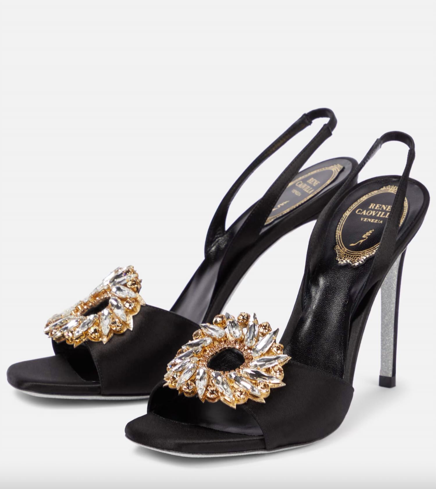 Струящиеся платья, укороченные брюки и даже комбинезоны... эти сандалии подойдут ко всему! Дополните свою коллекцию обуви босоножками Amanda Black Sandals от Rene Caovilla, выполненными из роскошного атласа элегантного черного оттенка. Эти женские