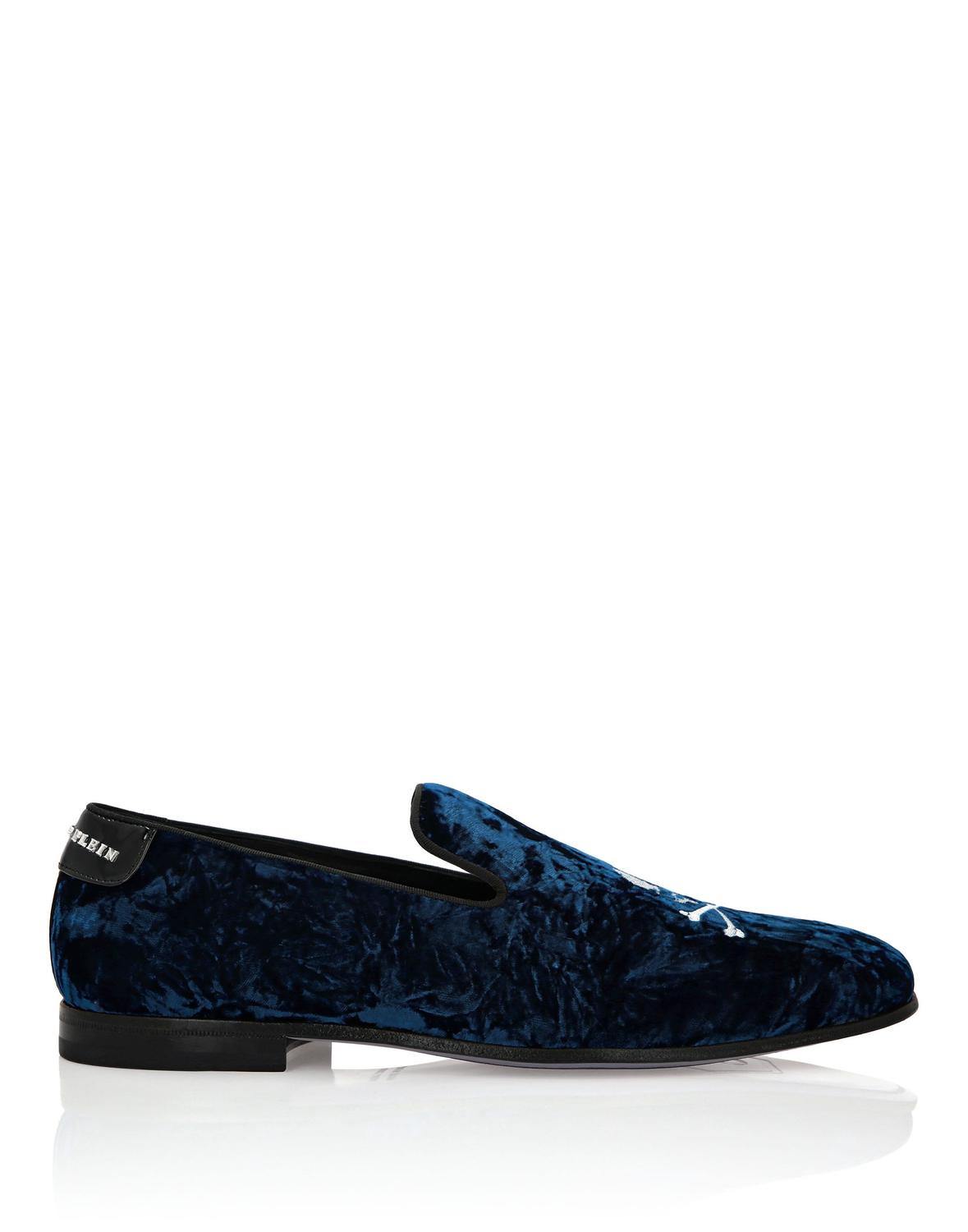 Вечерние лоферы - незаменимый предмет гардероба для создания элегантности. Взгляните на обновленную версию слипонов от Plein. Посмотрите, как детали играют важную роль. ● Верх из мятого бархата ● Вышивка «Череп и кости» на союзке ● Отделка Grosgrain ● Лакированная пятка с металлической надписью Brand ● Подошва из натуральной кожи ● Логотип, нанесенный методом горячего тиснения на подошву ● Подкладка из наппы ● Стелька из атласа с ромбовидной стежкой
