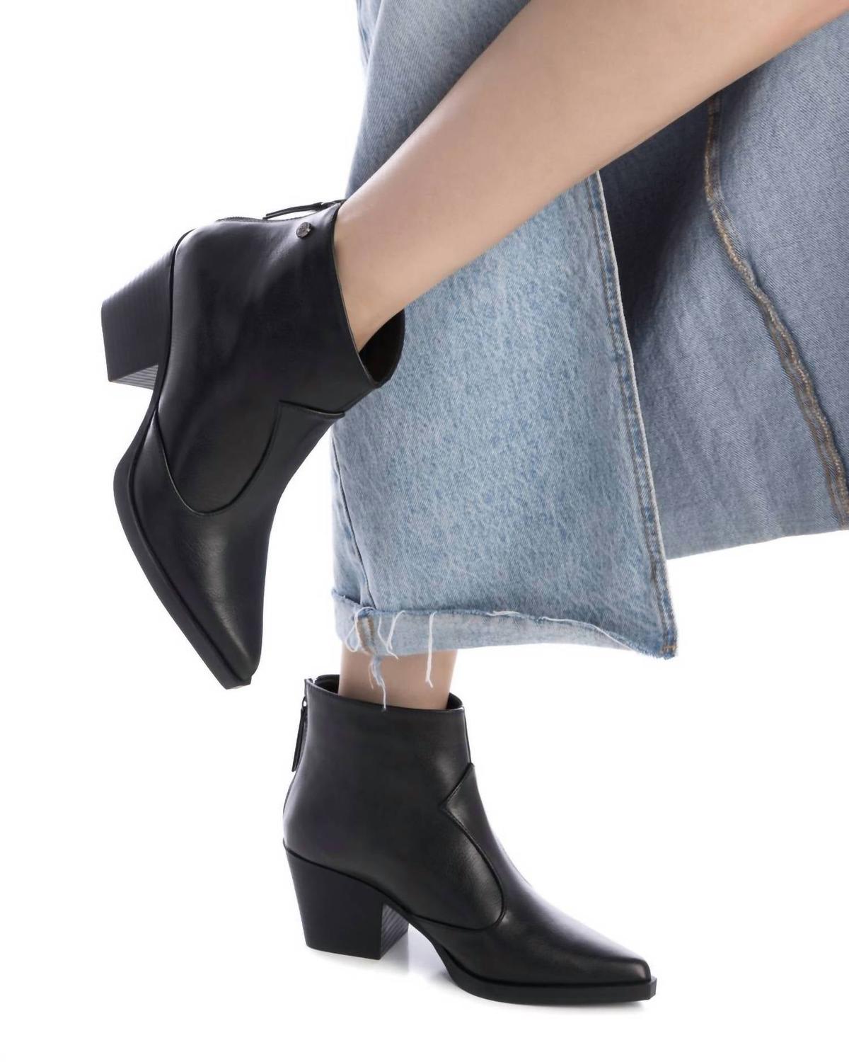 Встречайте идеальные и самые универсальные ботинки. Высота до щиколотки позволяет легко перенести этот стиль с дневного на вечерний. Носите их с любимыми узкими джинсами и футболкой для более непринужденного образа или с любимым мини-платьем и курткой для вечерней прогулки по городу. Дополните свой зимний гардероб женскими ботильонами-платьями Xti из черной искусственной кожи, имитирующей роскошное ощущение натуральной кожи. Эти ботинки оснащены практичной застежкой-молнией сзади и удобным блочным каблуком высотой 6 см (2,36 дюйма) для удобства носки. Заостренный носок придает современный силуэт, а нескользящая подошва обеспечивает надежную устойчивость. Эта модель, сертифицированная PETA как веганский продукт, является свидетельством этичного и модного зимнего гардероба.