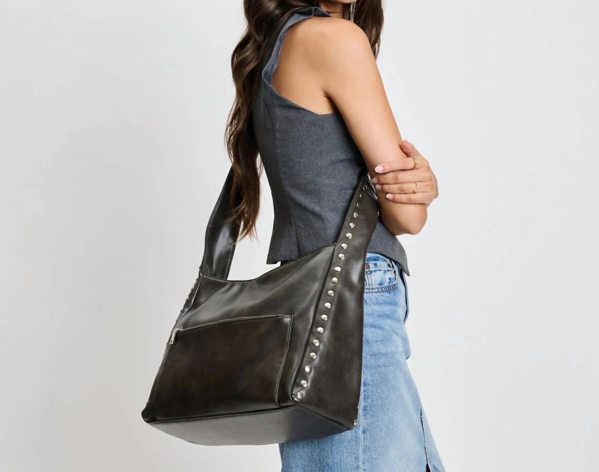 Представляем сумку через плечо Erika от Moda Luxe - стильный аксессуар из гладкой веганской кожи эффектного серого оттенка. Эта сумка оснащена карманами на молнии спереди и сзади для удобного доступа, а внутри, на тканевой подкладке, есть один карман на молнии и два накладных кармана для оптимальной организации вещей. Материал: веганская кожа. Застежка: молния. Идеально дополнит ваш повседневный образ благодаря элегантному дизайну и отделке заклепками.