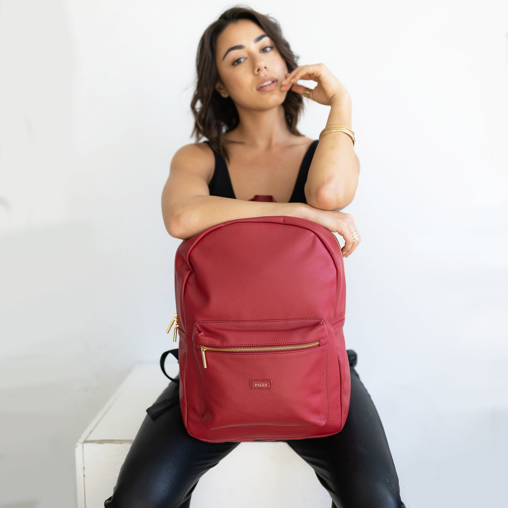 • Передний карман для хранения с открытой золотой молнией
