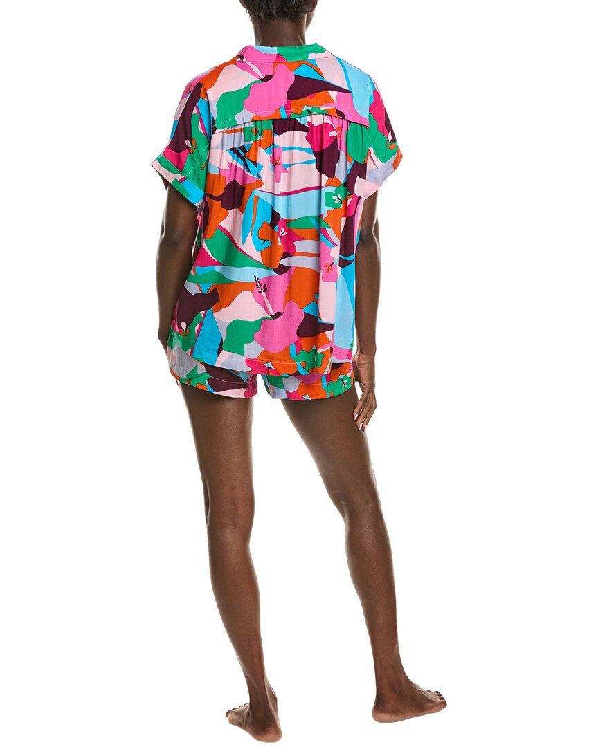 Представляем комплект Sanctuary из двух предметов: топ и боксеры из нашей женской коллекции одежды для сна и отдыха. Этот комплект выполнен в цвете и с рисунком «Тропическое настроение» и включает в себя топ с рукавами «летучая мышь», воротником-стойкой и застежкой на пуговицы спереди, а также боксеры с эластичным поясом. Этот комплект, изготовленный из 100% вискозы, идеально подходит для комфортного и стильного отдыха. Длина топа от плеча до подола составляет около 71 см, длина внутреннего шва боксеров - около 8 см. Этот комплект Sanctuary - незаменимая вещь для отдыха дома или для крепкого сна. Можно стирать в стиральной машине, импортный. Рост модели - 178 см, размер S. Размеры могут незначительно отличаться в зависимости от размера.