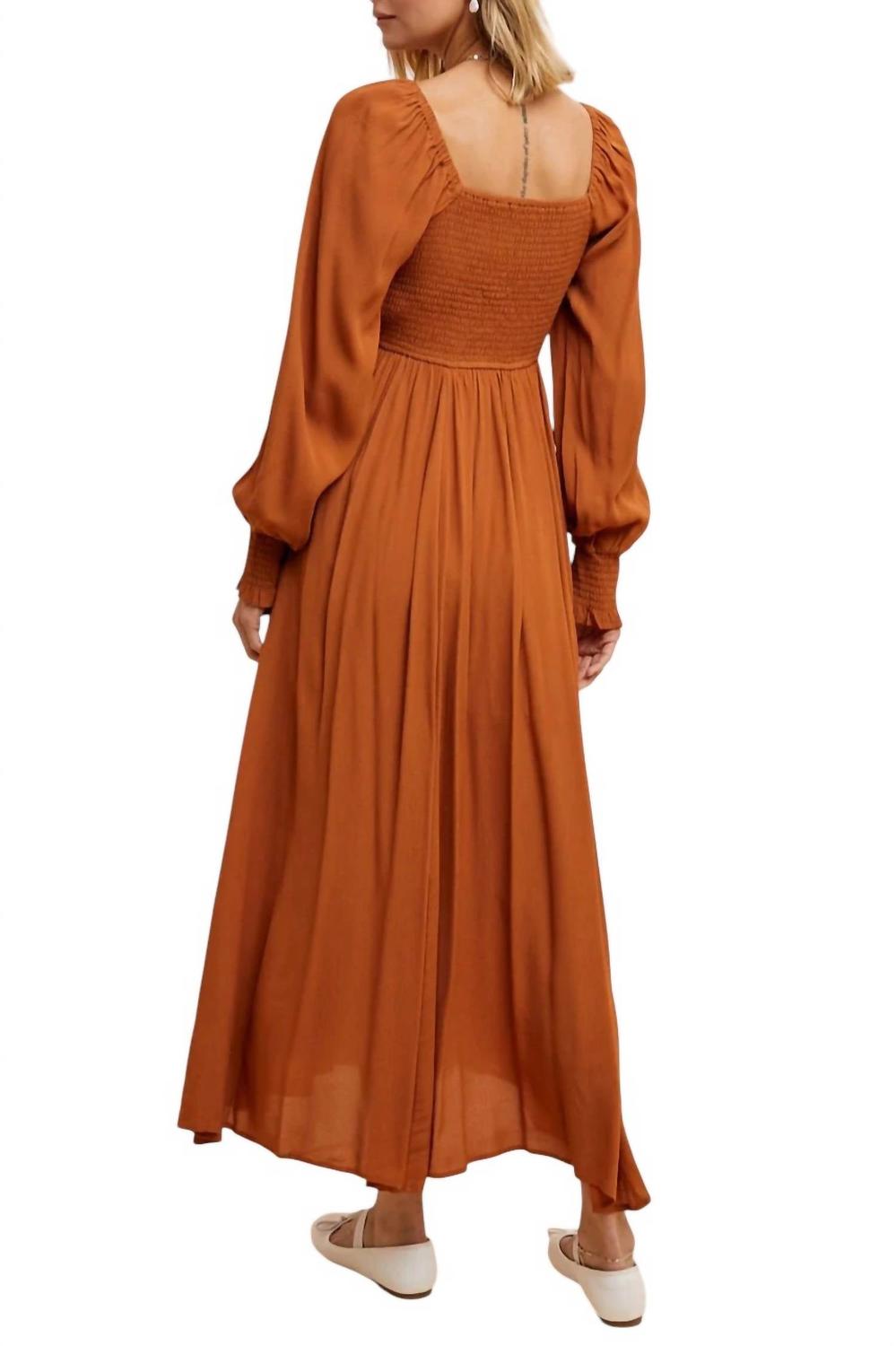 Это макси-платье с рюшами, длинными рукавами, квадратным вырезом и лифом с рюшами и разрезом до бедра. Платье изготовлено из 100% вискозы, имеет А-образный силуэт и застежку-липучку для комфорта и стиля.