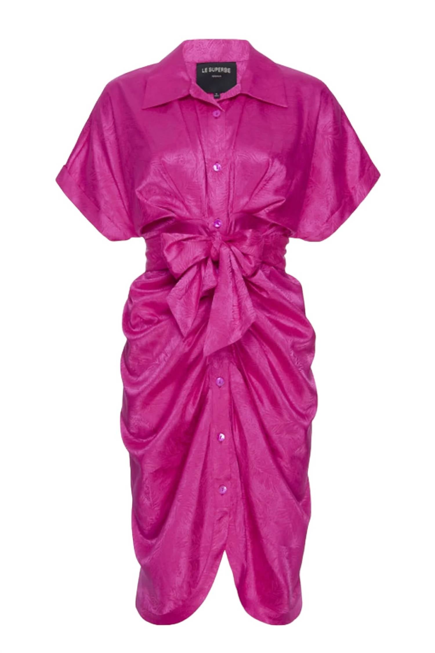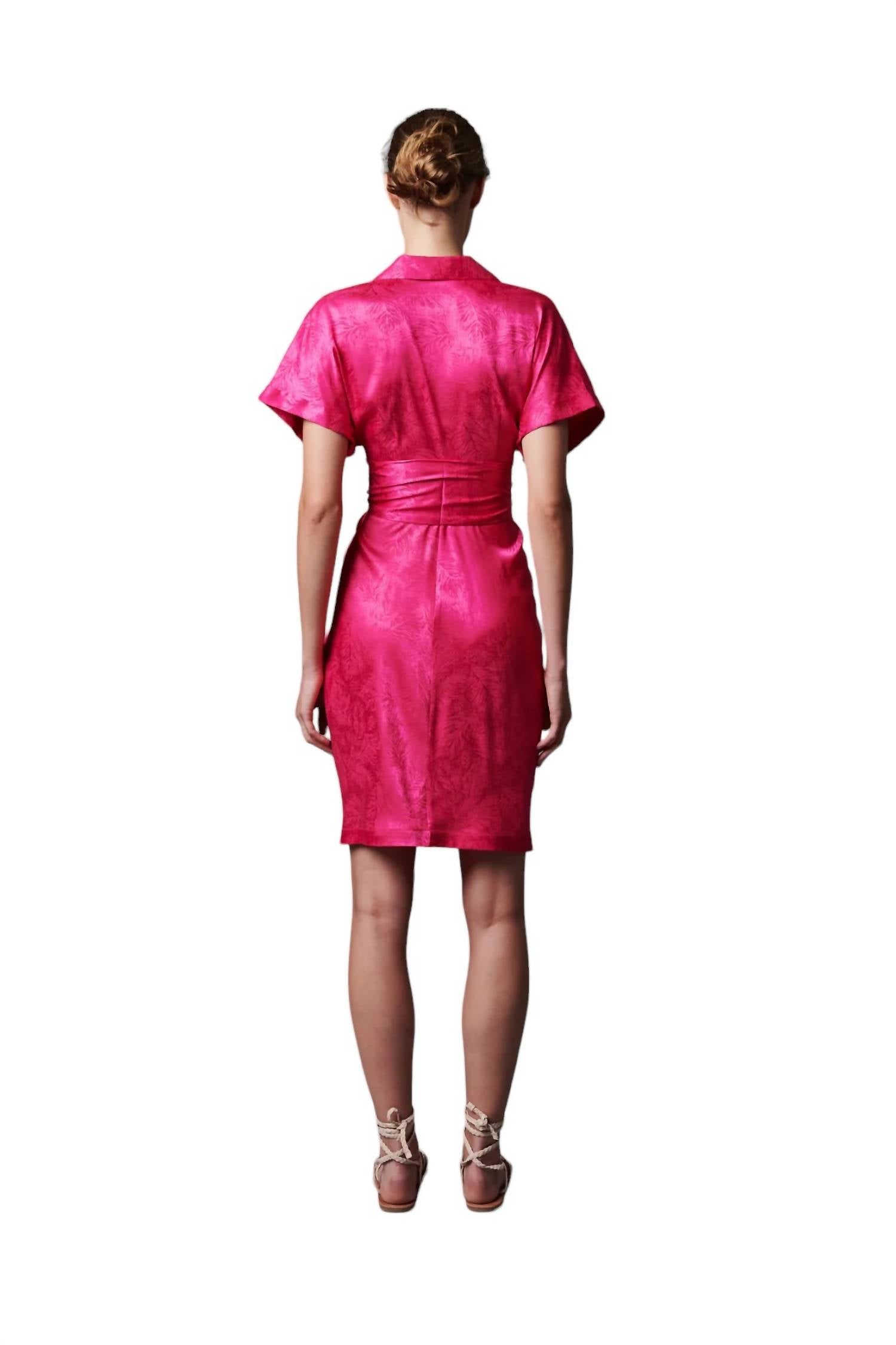 Это мини-платье Miko с рюшами, завязывающимся поясом и короткими рукавами «летучая мышь» с легким оттенком кимоно. Классическая застежка на пуговицы спереди добавляет элегантности этому незаменимому ярко-розовому мини-платью. Спереди - пуговицы. Длина мини-платья. Пояс из той же ткани. 100% вискоза.