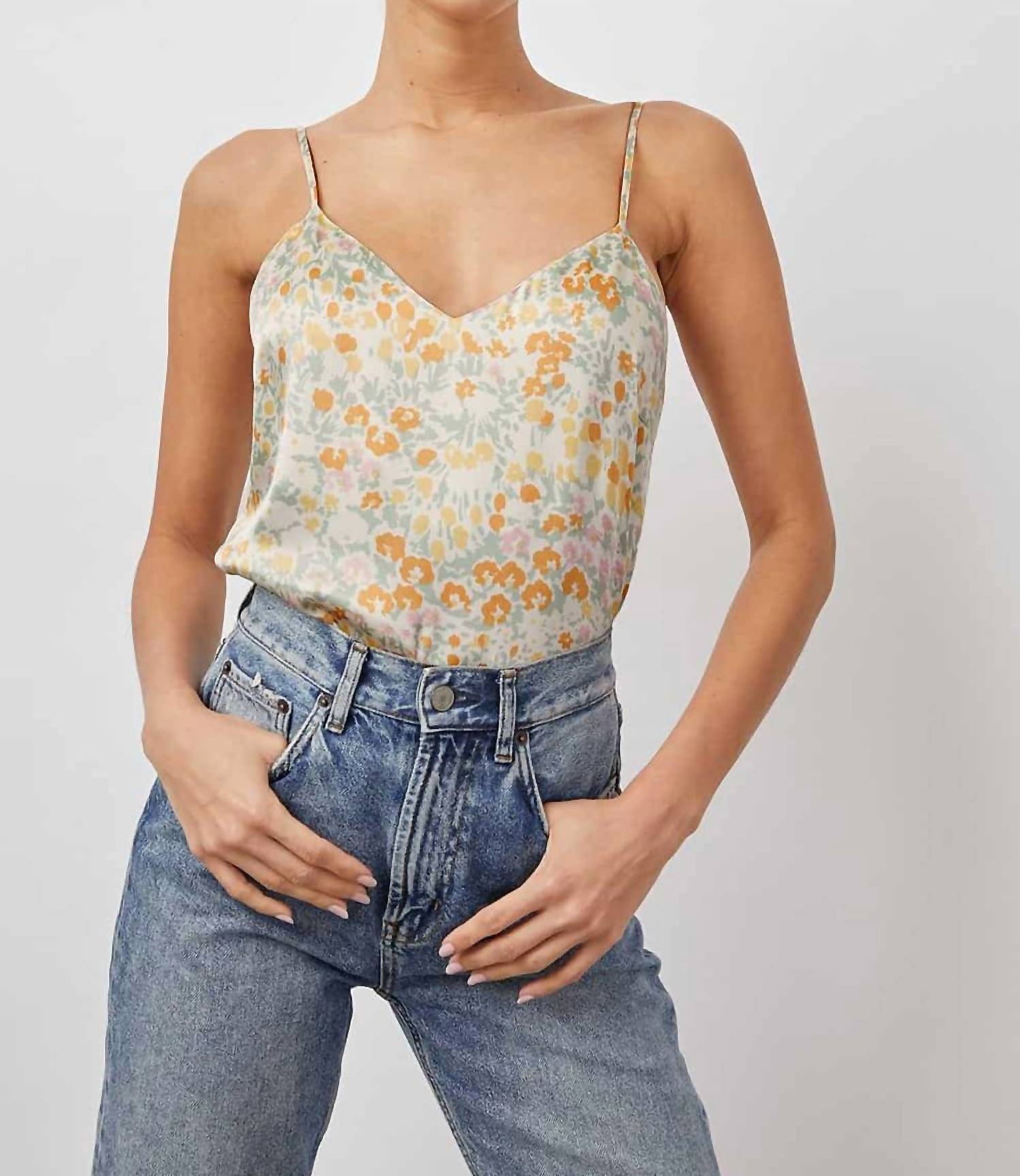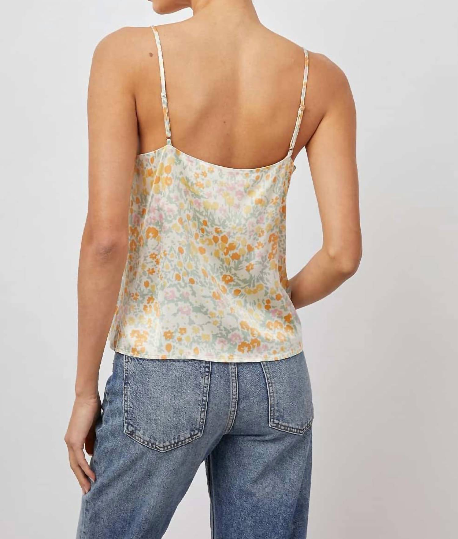 Изготовлено из супергладкого легкого крепа с тонкими регулируемыми бретельками. Длина спереди - 14 дюймов (измерено от размера S). Только химчистка. На модели размер S. Параметры модели: рост 175 см, обхват груди 86 см, обхват талии 68 см, обхват бедер 88 см.