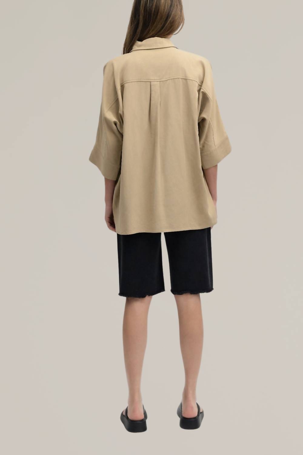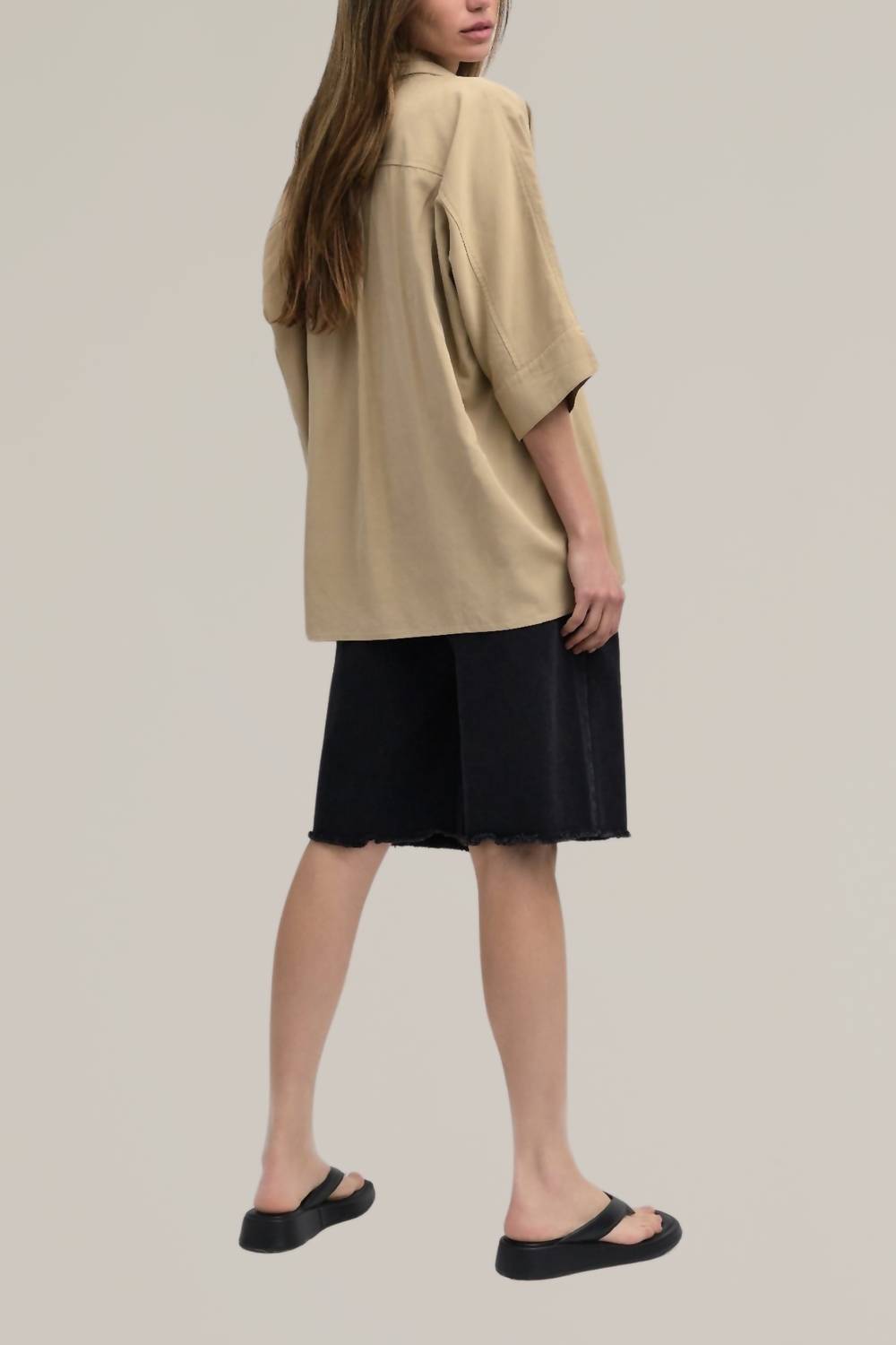 Тенселовая блуза с пуговицами в бежевом цвете MOD REF