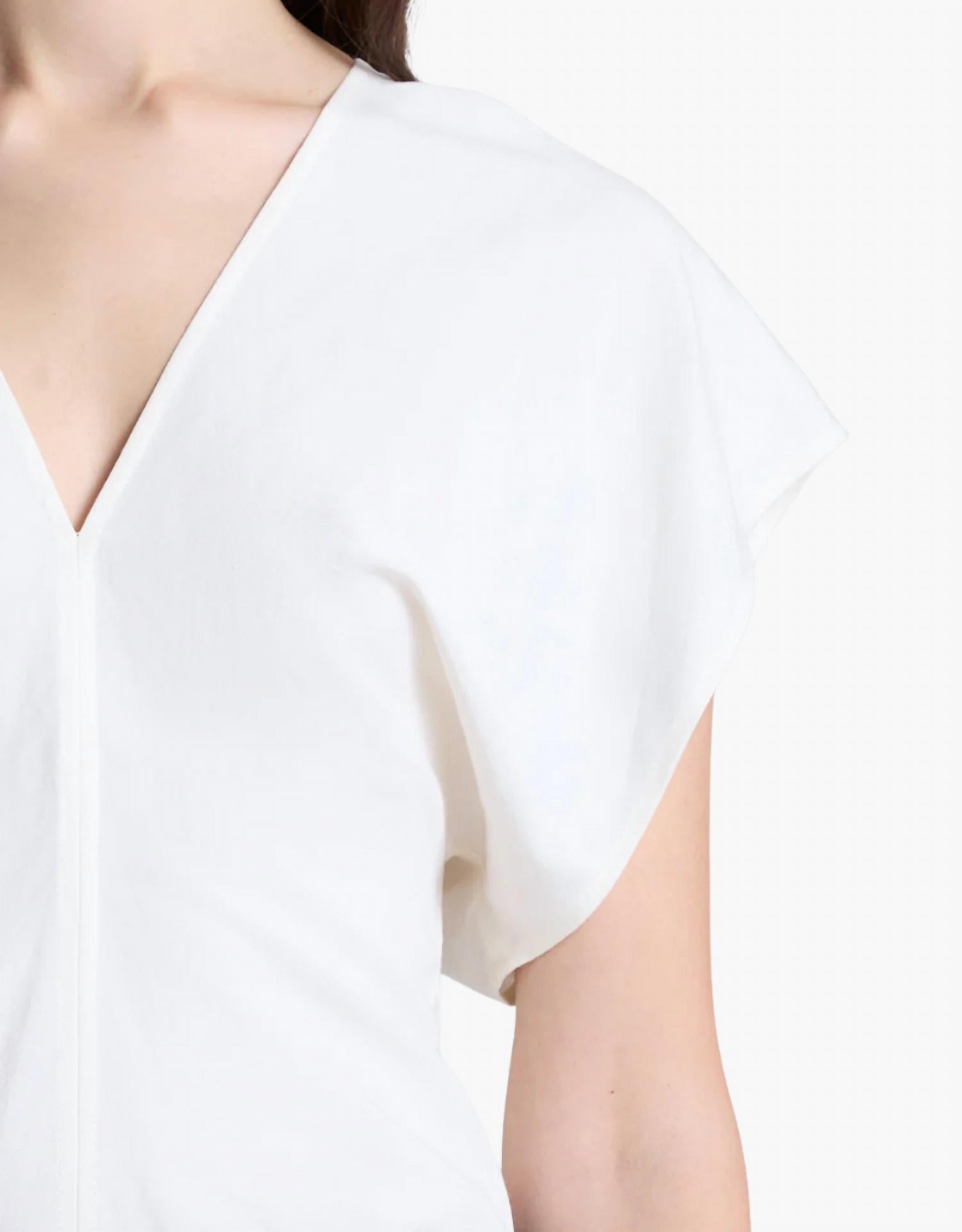 Эта классическая футболка с коротким рукавом станет вашим незаменимым предметом гардероба в этом сезоне и в будущем. Представляем льняной топ Fay от ALC - элегантное изделие, выполненное без лишних усилий в роскошном кремовом оттенке. Этот топ изготовлен из смеси 76% вискозы и 24% льна, что обеспечивает естественную драпировку и мягкость. Футболка с короткими рукавами-крылышками и эффектным V-образным вырезом дополнена элегантной застежкой-молнией сзади для создания современного образа. Длина изделия: 24,75 дюйма. Уход: химчистка. На модели размер 4 (рост 168 см).