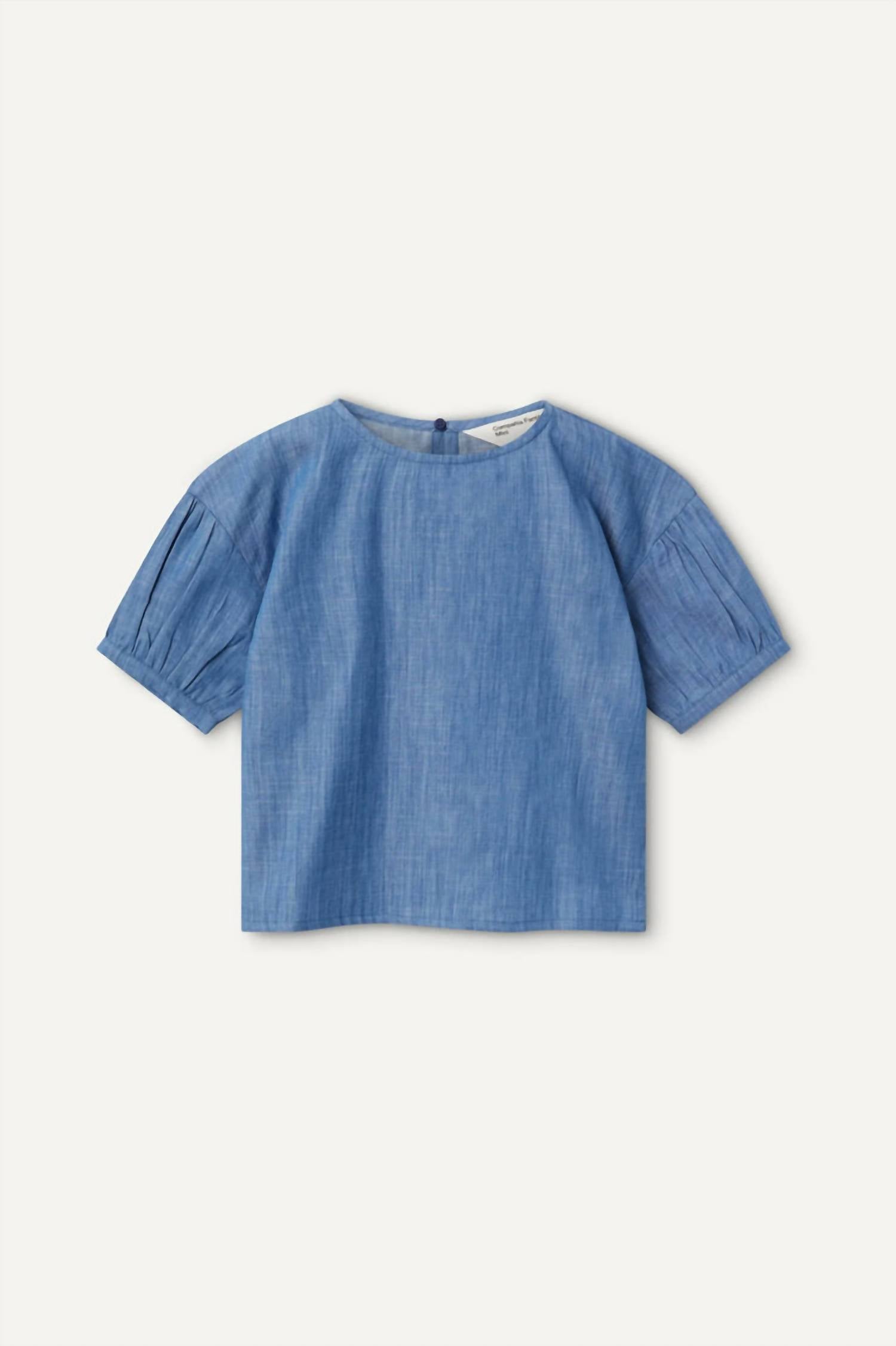 Представляем топ в ковбойском стиле для девочек от Compania Fantastica - очаровательный выбор для вашей малышки. Эта однотонная синяя блузка с короткими рукавами-буфами и круглым вырезом добавляет элегантности. Изготовленная из классического денима, она воплощает минималистичный тренд, идеально подходящий для весенних мероприятий, таких как начало учебного года или День независимости. Сочетайте ее с любым нарядом для создания непринужденно стильного образа.