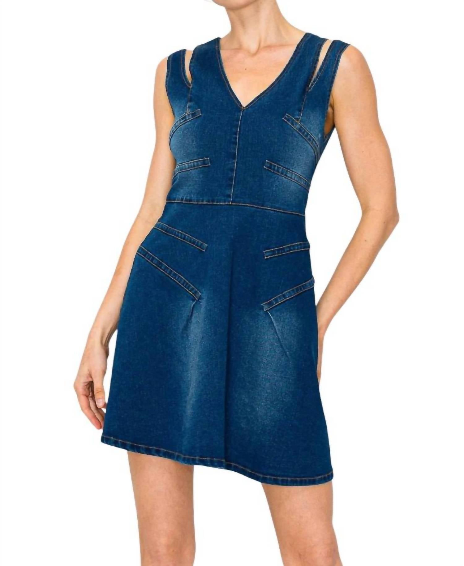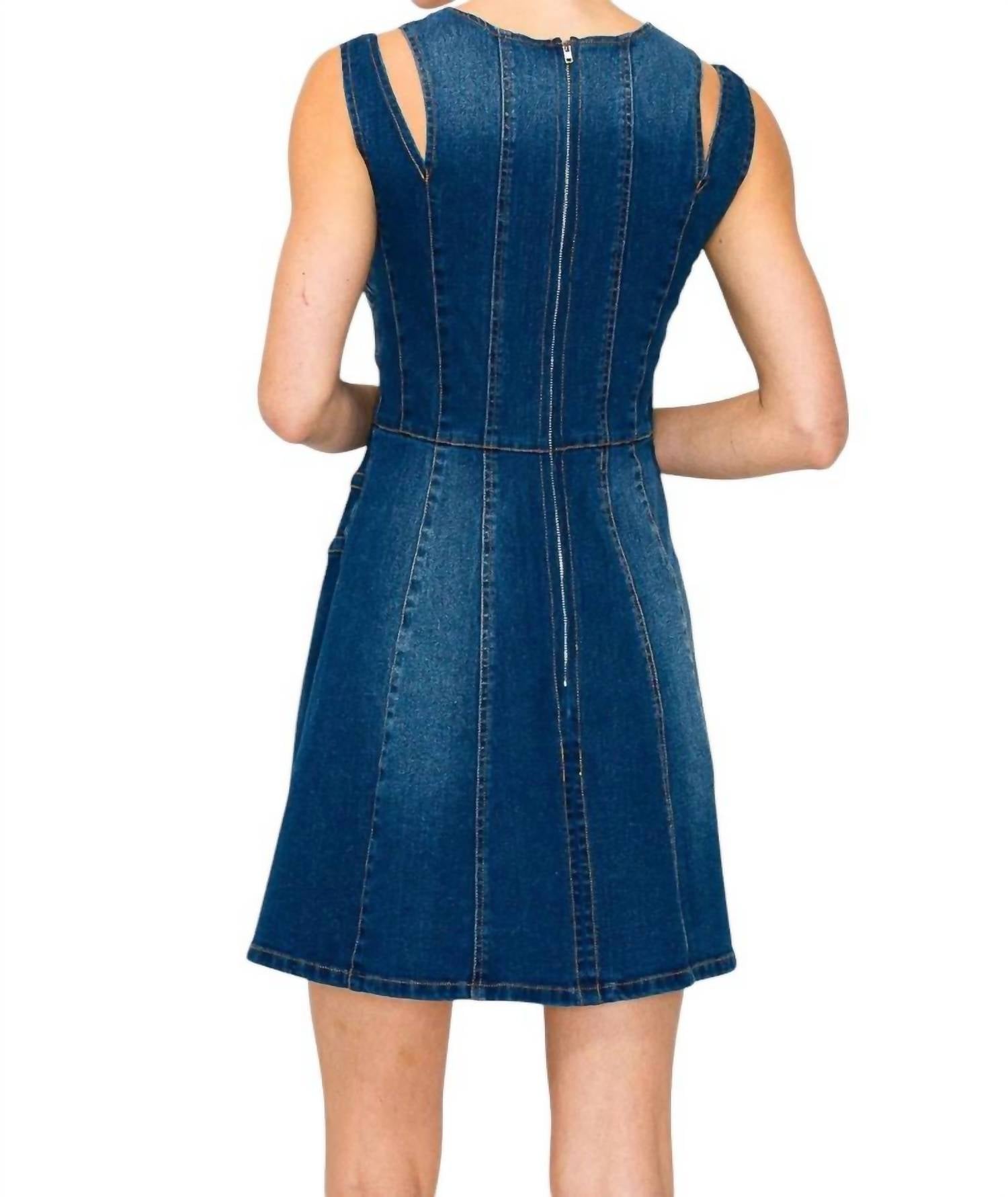 Джинсовое мини-платье INA Tabitha Cut Out Slit Straps средней степени стирки - это идеальное сочетание изысканности и смелого стиля. Это платье без рукавов с V-образным вырезом и очаровательным разрезом на плече выполнено из хлопковой смеси (65% хлопка, 33% полиэстера и 2% спандекса) для комфортной посадки, подчеркивающей изгибы тела. Платье имеет современный А-образный силуэт и застегивается на элегантную молнию сзади. Для легкого ухода рекомендуется машинная стирка в холодной воде и сушка на веревке. Это фактурное изделие без карманов станет вашим эффектным выбором для любого шикарного случая.
