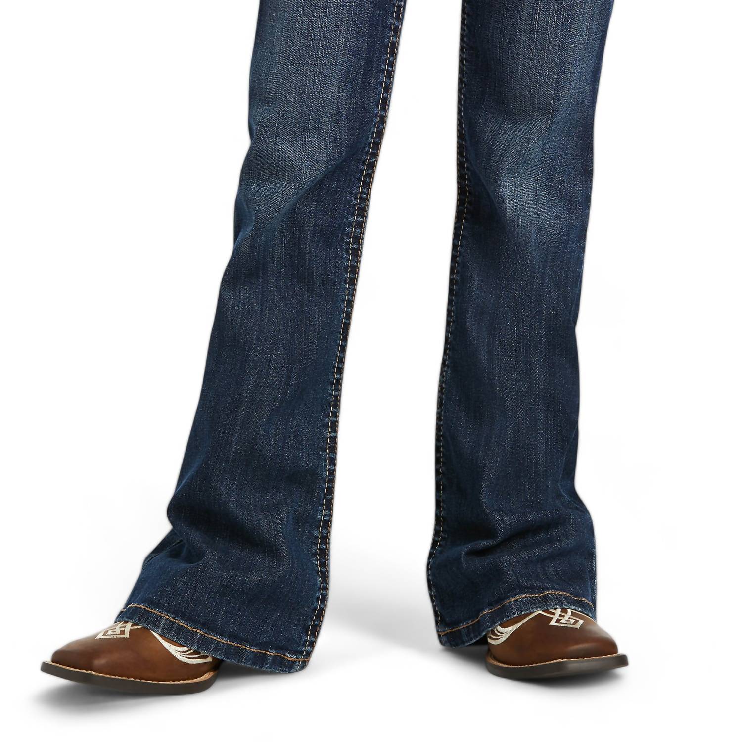 Эти джинсы темного цвета с модными задними карманами выполнены в классическом пятикарманном стиле. Они облегают бедра и расклешены книзу. Они сшиты из легкого эластичного денима плотностью 9,75 унций. Состав ткани: 93% хлопок, 5% полиэстер и 2% спандекс для комфорта и долговечности. Можно стирать в стиральной машине в холодной воде. Размер соответствует заявленному.