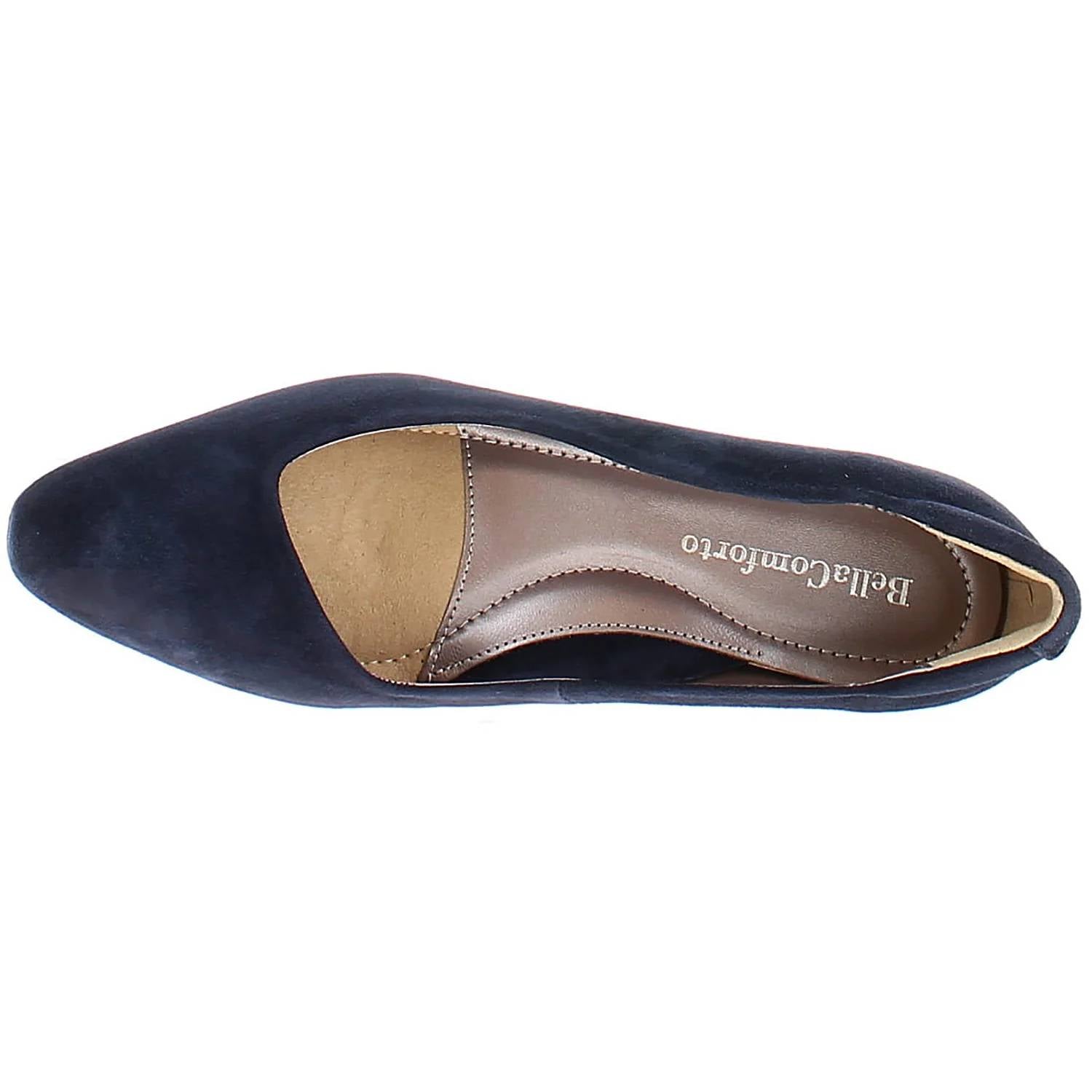 Идеальная высота для дневного и вечернего образа. Подчеркните свой стиль с помощью туфель Evelyn Pump от Bella Comforto с роскошным замшевым верхом изысканного чернильного оттенка. Эти элегантные женские туфли на каблуке тщательно изготовлены вручную в Португалии и оснащены блочным каблуком высотой 5 см, обтянутым лакированной кожей, что добавляет нотку гламура. Они разработаны для максимального комфорта, оснащены мягкой стелькой и встроенной поддержкой свода стопы, дополнены острым миндалевидным носком и асимметричной союзкой. Эти туфли идеально подходят для взрослых женщин, ценящих стиль и комфорт, сочетая в себе роскошные материалы и продуманный дизайн.