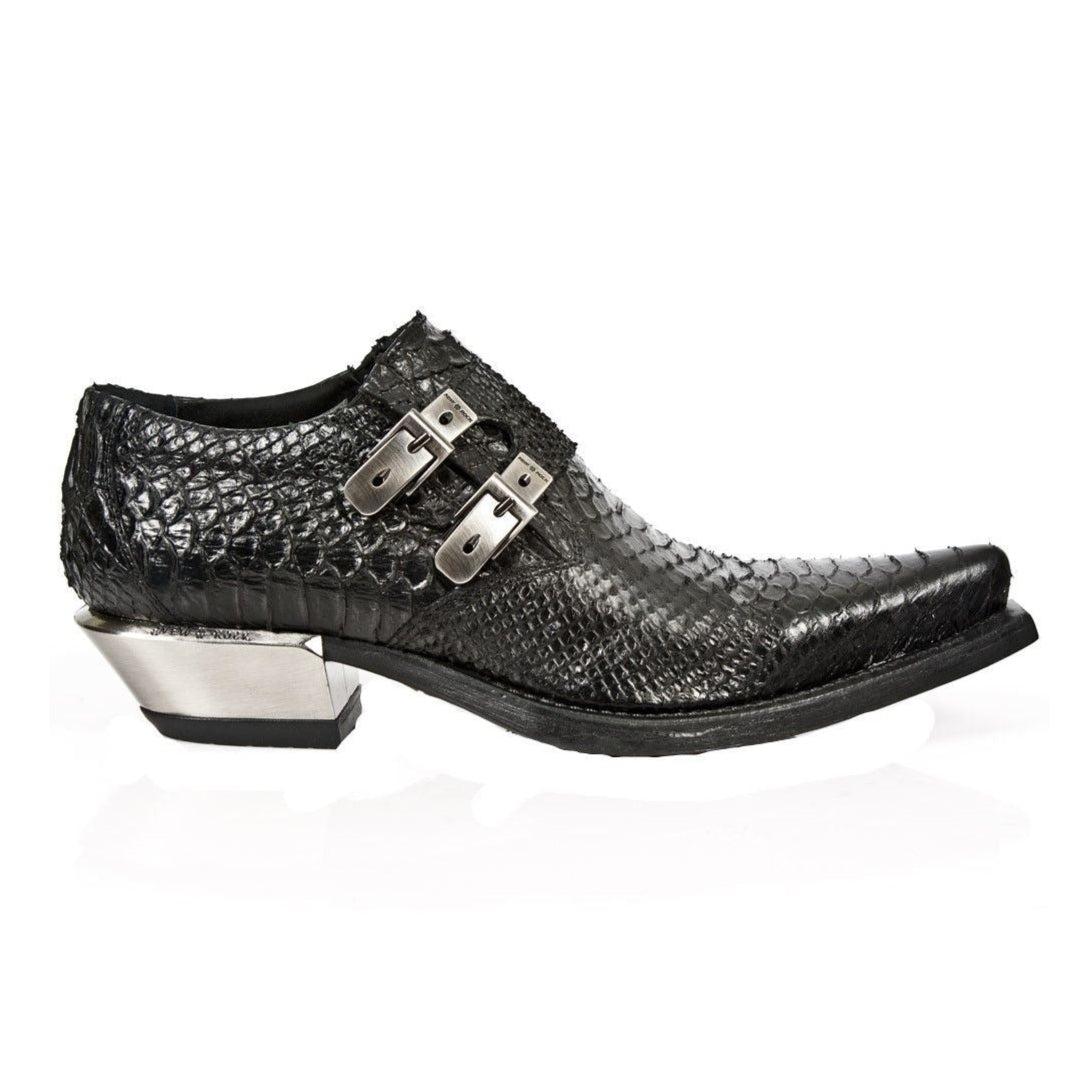 Эти туфли из культовой коллекции West сочетают в себе силуэт строгого костюма и ретро-дизайн в стиле вестерн, создавая поистине уникальный и стильный образ. Верх модели привлекает внимание текстурой змеиной кожи, которая подчеркивает престижное качество коровьей кожи, используемой New Rock. Металлические элементы на ремешках в виде пряжек и на пятке, где сталь используется для создания ослепительного эффекта, придают модели особый шарм. Высота каблука: 4 см, высота платформы: 1 см, высота голенища: 7 см, материал верха: коровья кожа.
