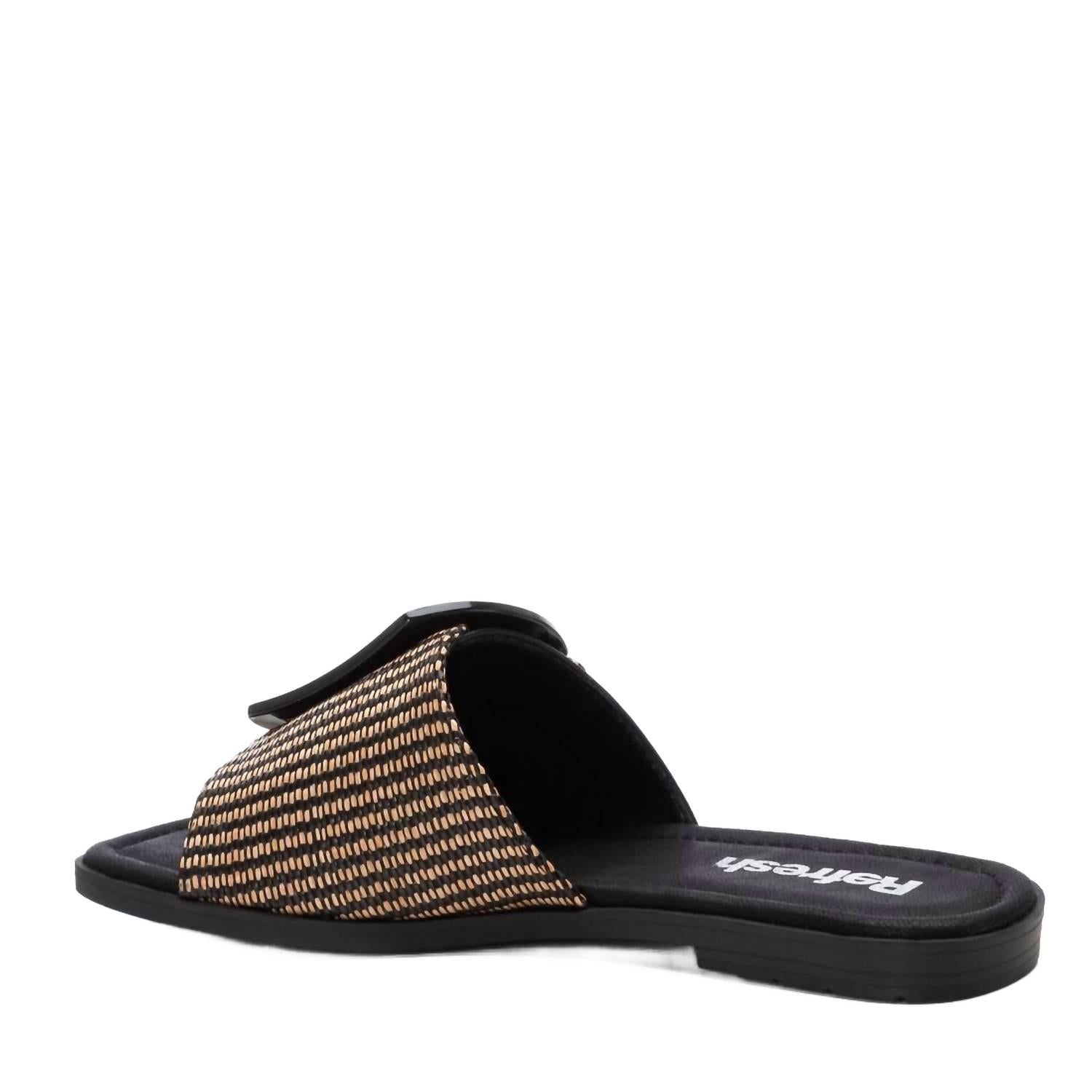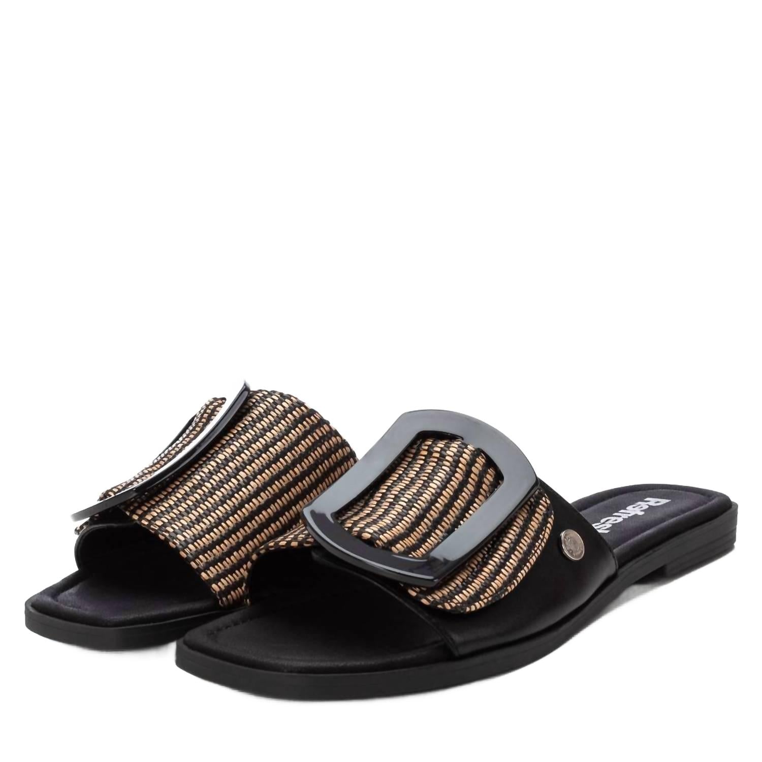 Классические мокасины, удобные и элегантные. Выбирайте стильные женские сандалии Refresh Flat Sandals от Xti с изящным круглым носком и плоской пяткой для максимального комфорта. Эти черные туфли на плоской подошве, изготовленные из экокожи и бикор-рафии, дополнены пряжкой из искусственного черепахового панциря на ремешке, что добавит модного штриха в любой образ. Они идеально подходят для повседневной носки, легко справляются с летней жарой и соответствуют сезонным трендам. Они идеально впишутся в гардероб современной женщины и станут стильным выбором как для работы, так и для отдыха.