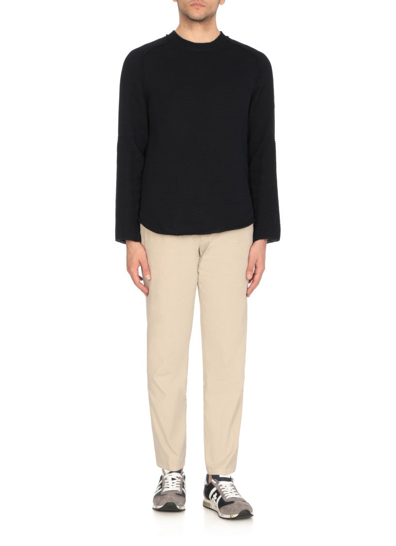 Ощутите непревзойденный стиль в этих синих кроссовках Premiata из кожи и ткани. Благодаря круглому носку и язычку с логотипом, эти кроссовки дополнены контрастными цветовыми акцентами по бокам и в верхней части пятки. Классическая шнуровка и высококачественные материалы обеспечивают исключительный комфорт для спортивного и повседневного образа.