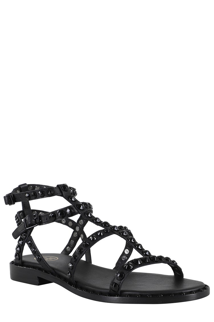 ASH представляет эти сандалии - истинное воплощение современной элегантности. Круглый носок и два ремешка, украшенные заклепками по всей поверхности, придают им дерзкий шарм. Регулируемая пряжка обеспечивает идеальную посадку, а подошва из 100% натуральной кожи обеспечивает комфорт и долговечность, делая эти сандалии идеальными для самых разных случаев.