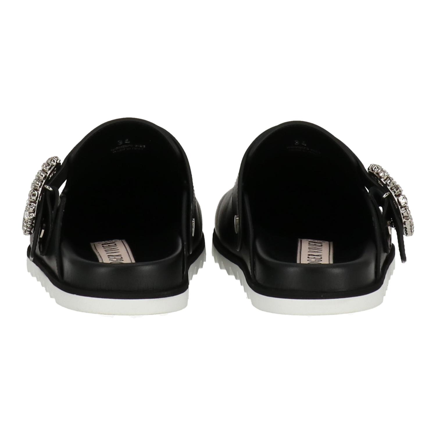 Откройте для себя изысканность с женскими черными мулами Roger Vivier - универсальной и элегантной обувью. Эти мюли из гладкой черной кожи и классического силуэта добавят вневременной привлекательности любому образу. Они идеально подойдут как для повседневных, так и для деловых случаев, легко сочетаясь с джинсами или платьями, создавая изысканный образ. Эти мюли, созданные с особым вниманием к деталям, обеспечивают комфорт и стиль на каждом шагу. Насладитесь изысканной роскошью с женскими черными мюлями Roger Vivier и легко дополните свой образ.