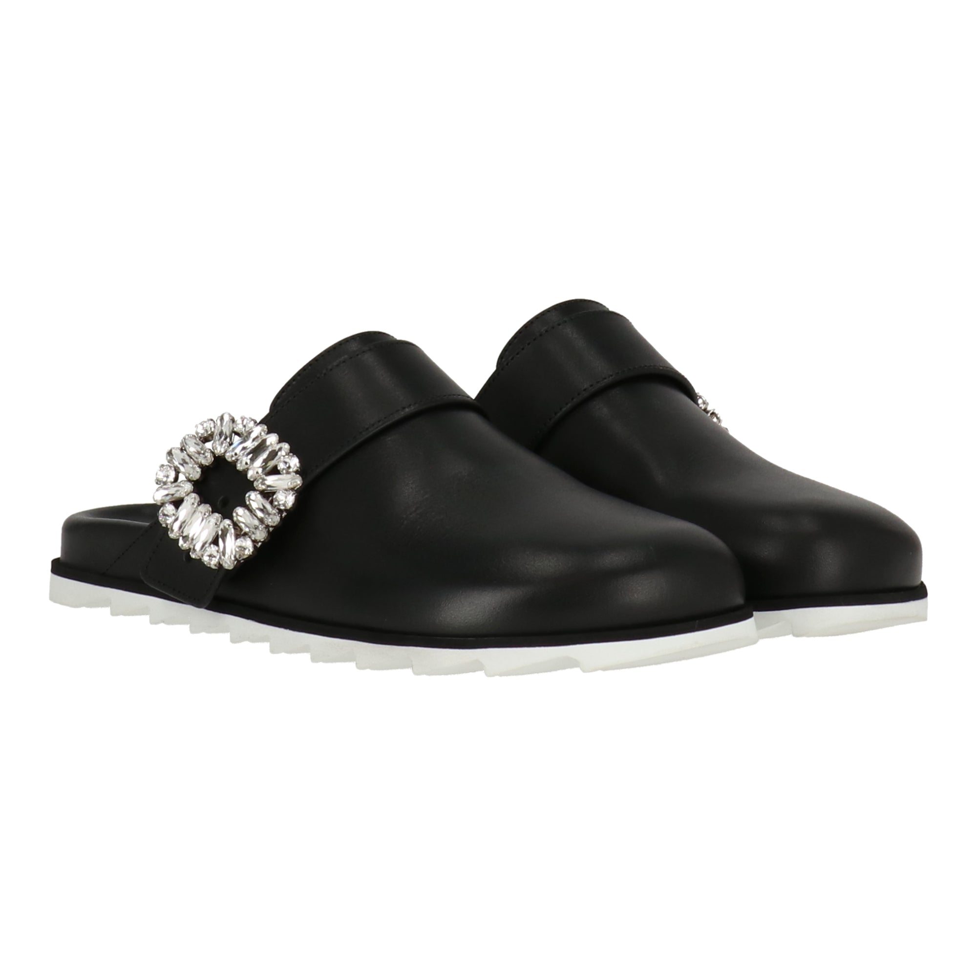 Откройте для себя изысканность с женскими черными мулами Roger Vivier - универсальной и элегантной обувью. Эти мюли из гладкой черной кожи и классического силуэта добавят вневременной привлекательности любому образу. Они идеально подойдут как для повседневных, так и для деловых случаев, легко сочетаясь с джинсами или платьями, создавая изысканный образ. Эти мюли, созданные с особым вниманием к деталям, обеспечивают комфорт и стиль на каждом шагу. Насладитесь изысканной роскошью с женскими черными мюлями Roger Vivier и легко дополните свой образ.