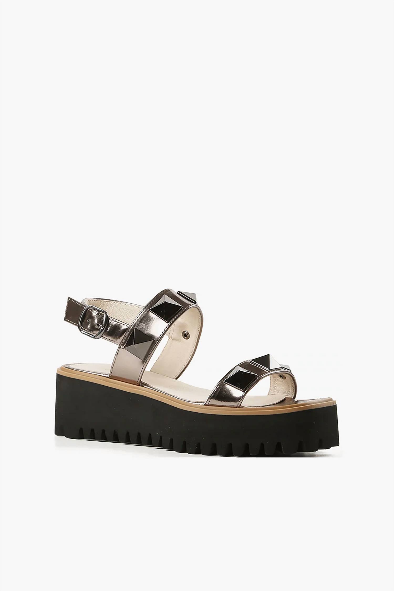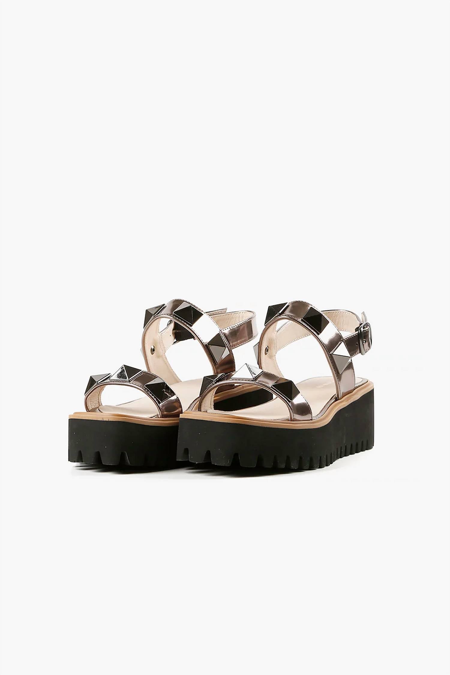 Добавьте немного роста с идеальной платформой. Женские сандалии Pyramid Stud Flatform от ALL BLACK в шикарном оловянном оттенке. Изготовленные из высококачественной лайковой кожи с поддерживающей стелькой из ЭВА и удобной кожаной стелькой, эти сандалии гармонично сочетают в себе стиль и комфорт. 5-сантиметровый каблук-платформа и открытый носок дополнены застежкой-ремешком с пряжкой сзади для идеальной посадки. Идеально подходят для женщин, которые ценят сочетание стиля и функциональности в своей обуви.