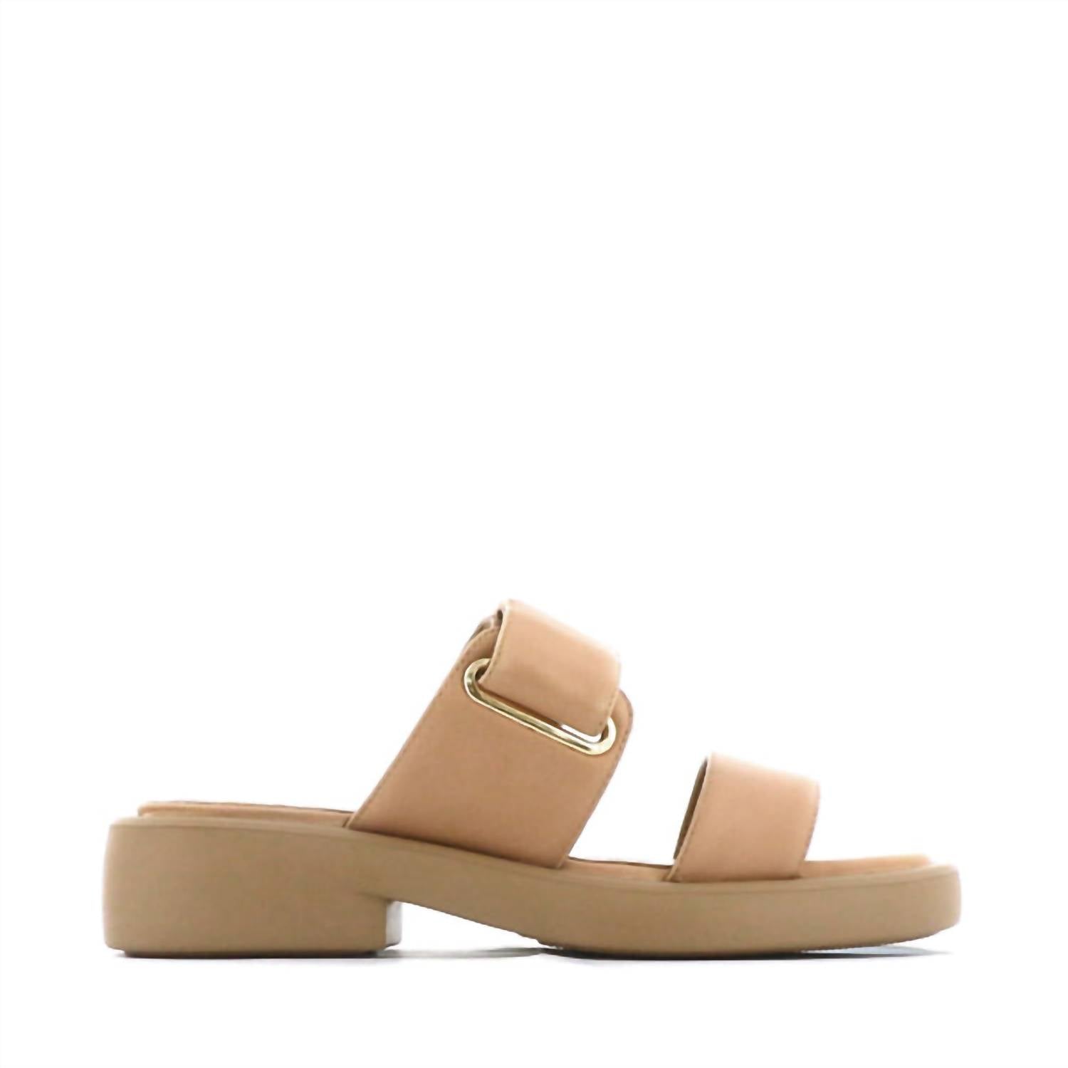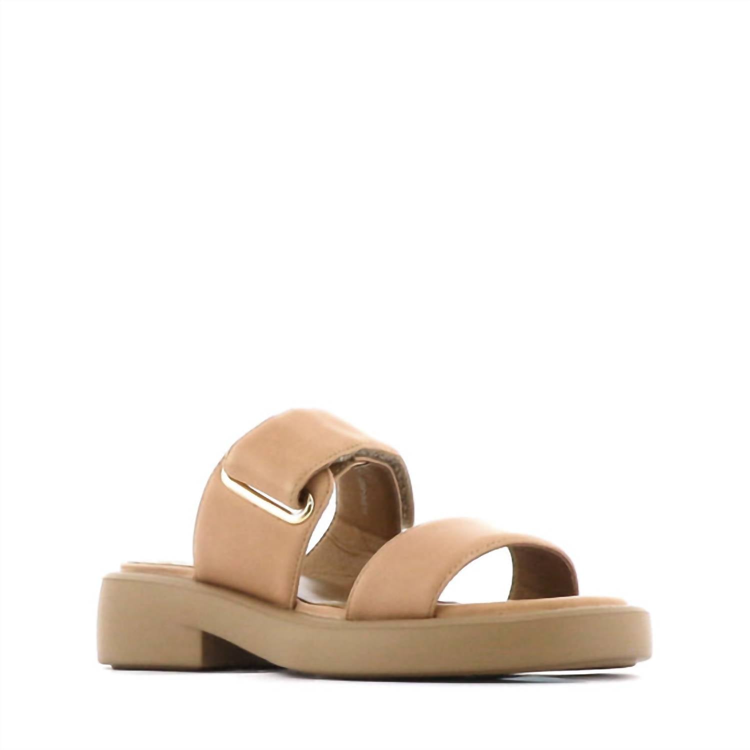 Ощутите сдержанную элегантность женских босоножек Eleni от EOS Melbourne, изготовленных из высококачественной кожи. Эти босоножки отличаются эффектными двойными ремешками, дополненными регулируемым задним ремешком со стильной фурнитурой золотистого и серебристого оттенков. Прочная плоская подошва, обеспечивающая как высоту, так и комфорт, идеально добавит изюминку вашему образу.