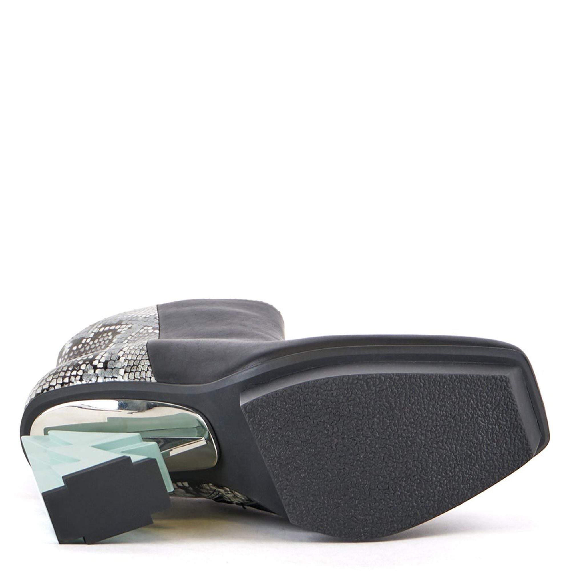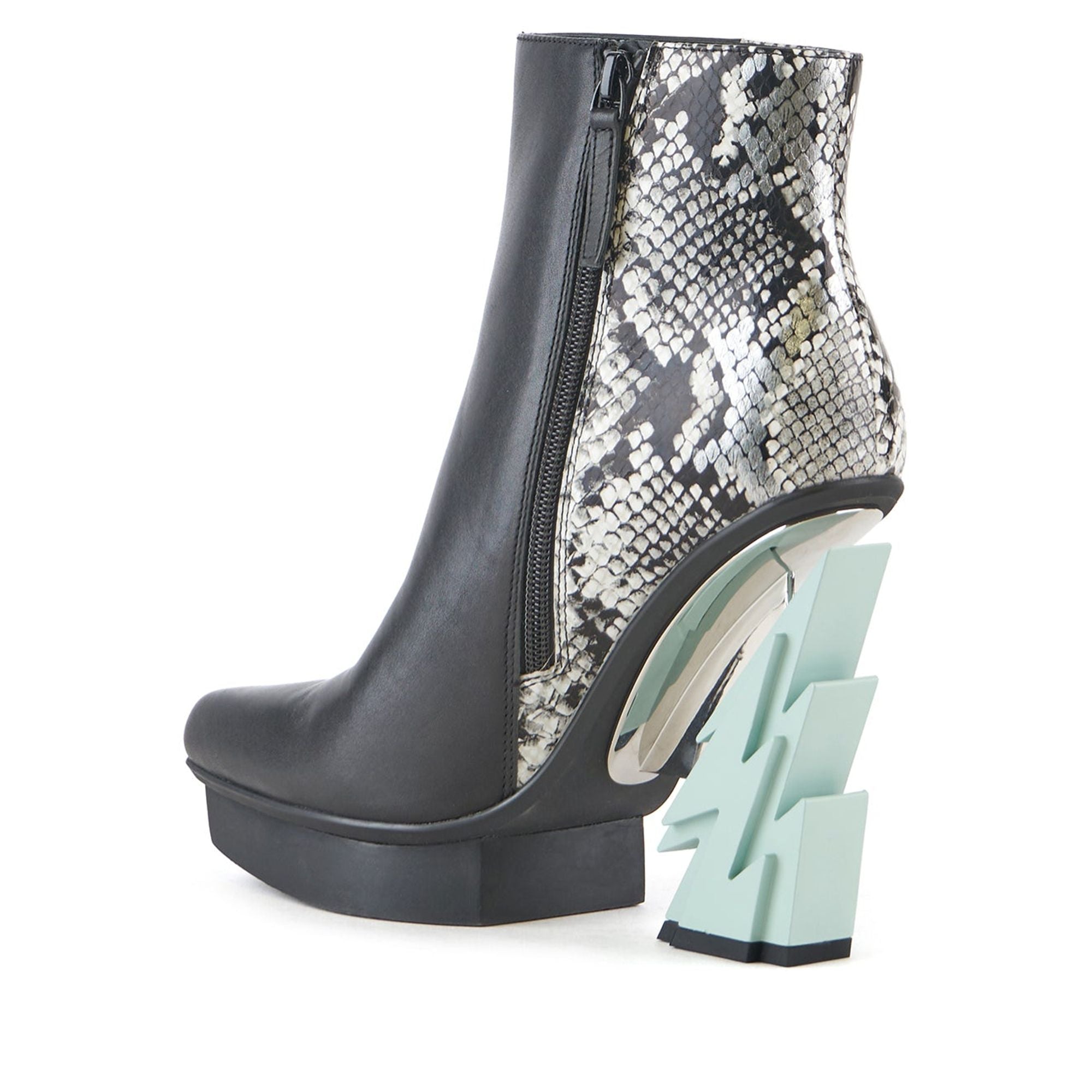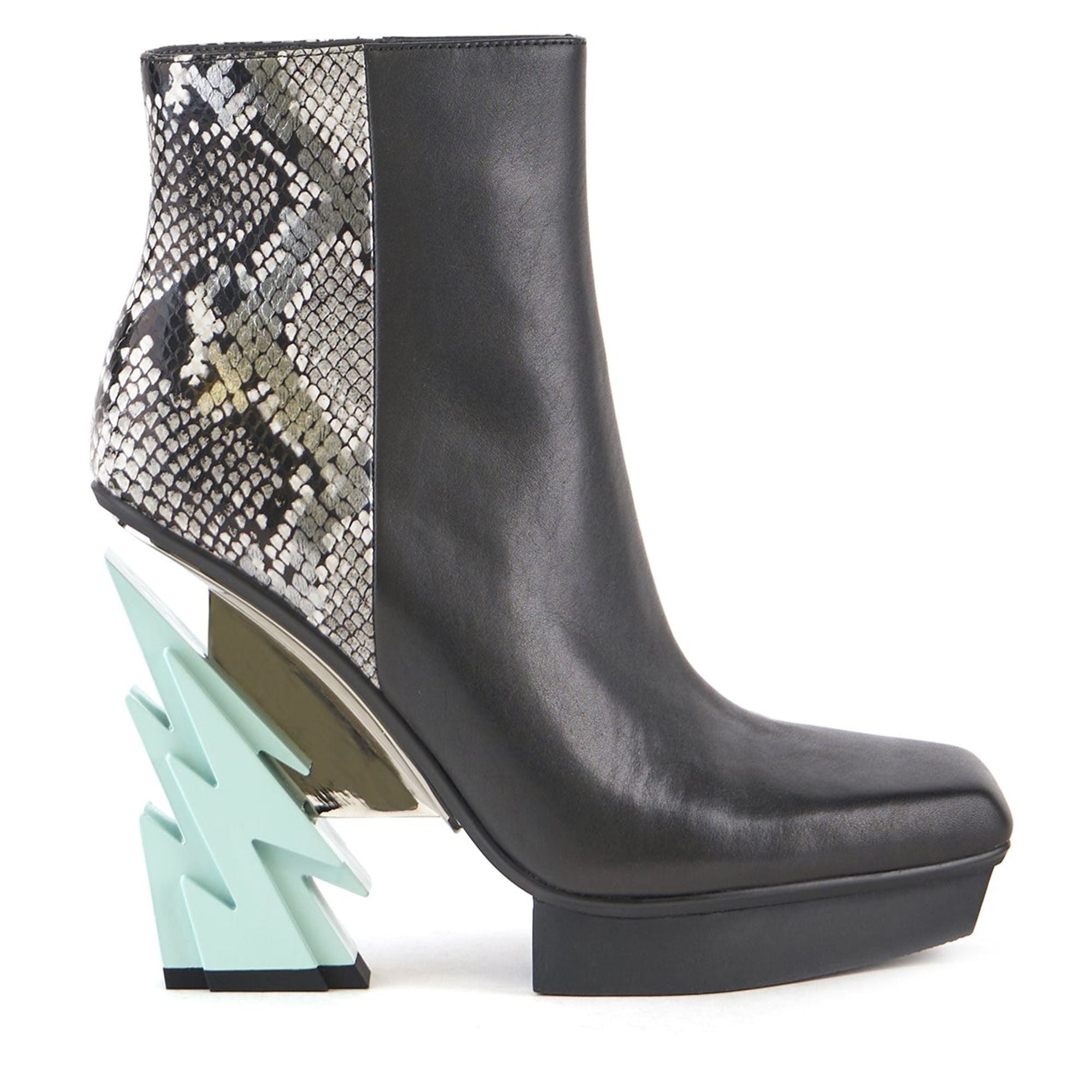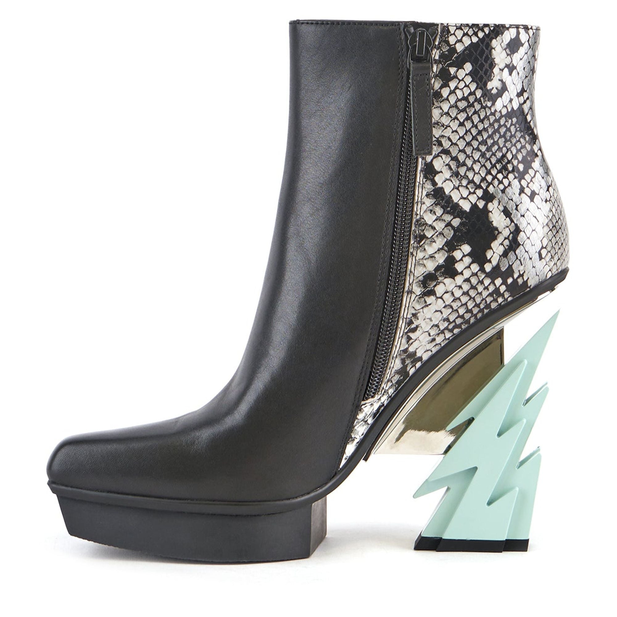 Ботильоны Glam Square - это максималистские ботильоны на платформе с каблуком в форме молнии. Верх модели выполнен из кожи, с нотками ретро-глэм-рока и игривым силуэтом, который никогда не останется незамеченным. Уход за изделием: металлизированные элементы могут легко поцарапаться при носке. Чтобы сохранить металлизированный вид, избегайте влаги, воздействия высоких температур и храните обувь в прохладном, сухом месте.