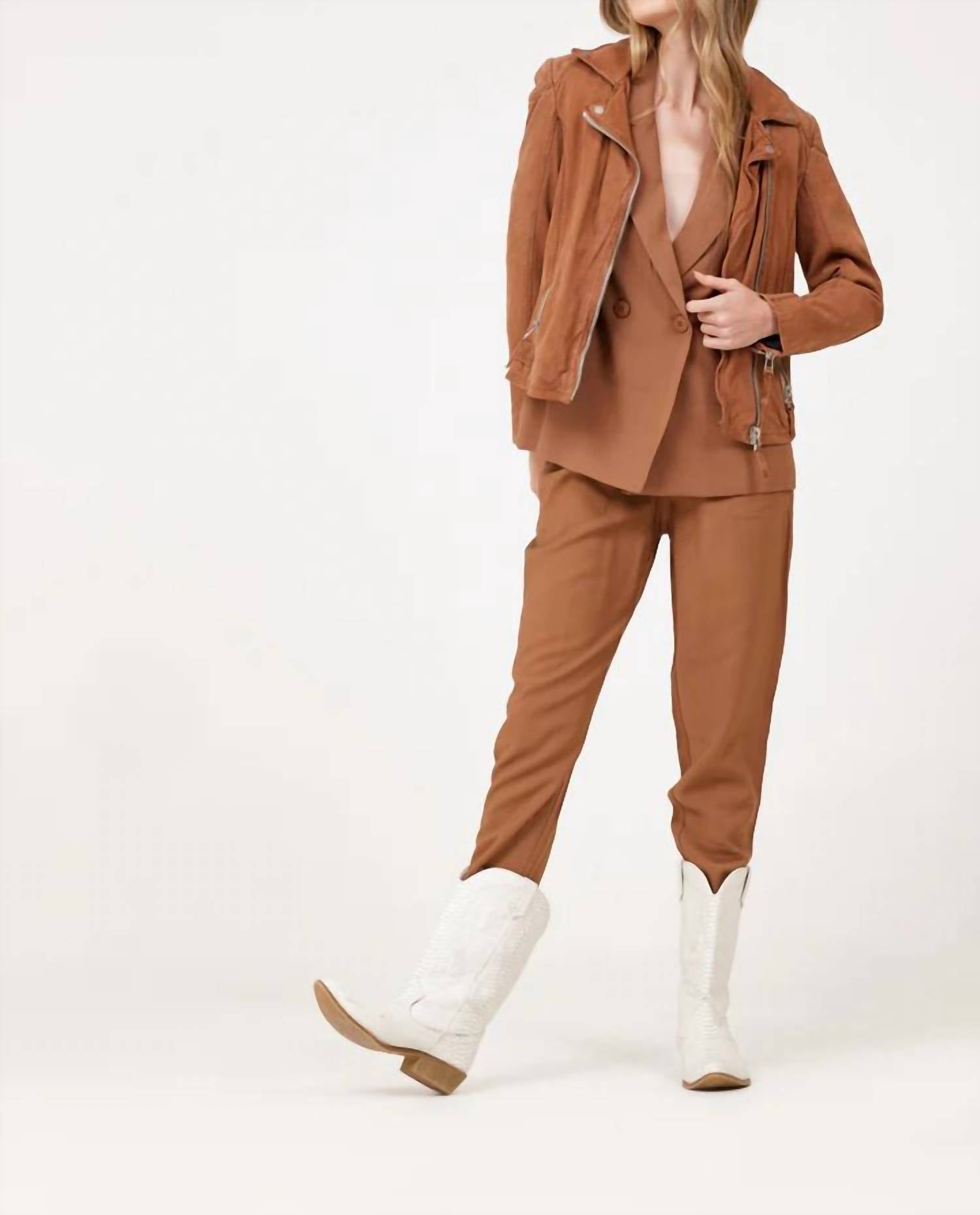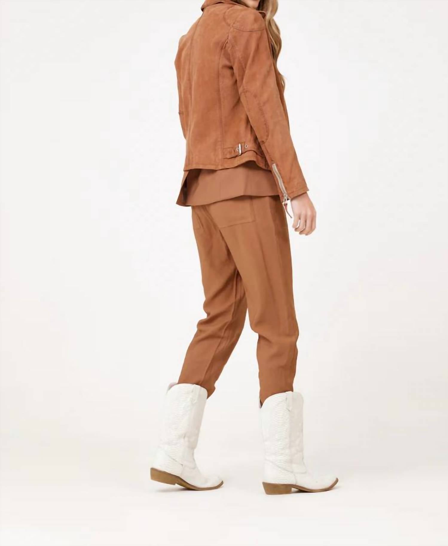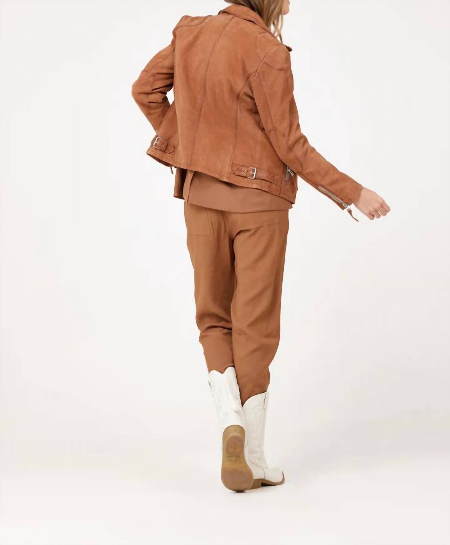 Модель, неподвластная времени, насыщенного карамельного оттенка, гармонично сочетает в себе стиль и функциональность. Длинные рукава и практичная застежка-молния обеспечивают удобство при надевании. Изготовлена из высококачественной кожи. Прочная и элегантная. Воротник-стойка добавляет элегантности. Внутри подкладка и карманы.