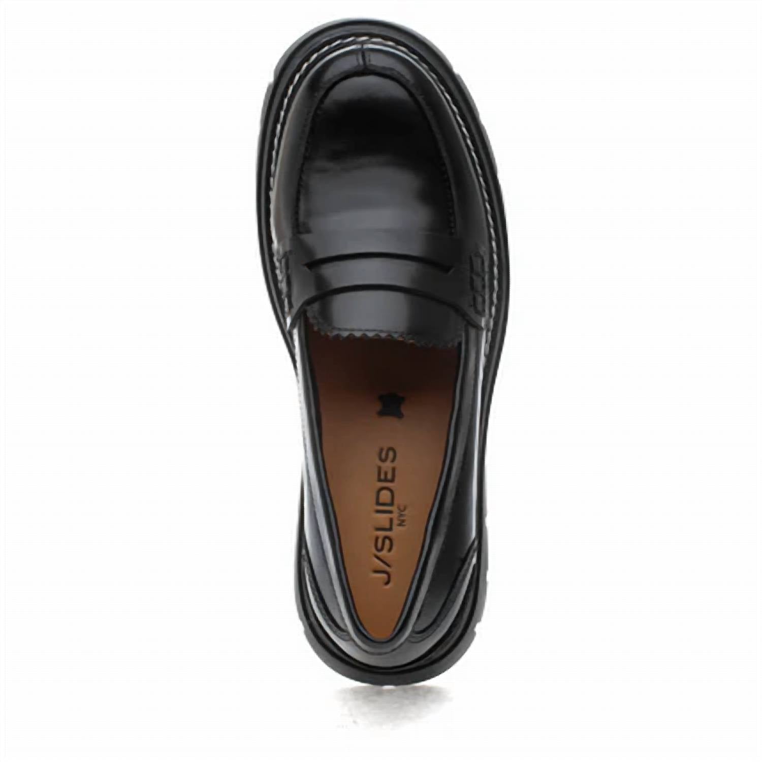 Классические мокасины, одновременно удобные и элегантные. J/SlidesTyler. Кожа черного цвета. Пенни-лоферы. Контрастная строчка. Кожаная подкладка. Мягкая кожаная стелька. Резиновая подошва с рифленым протектором. Каблук около 1,75 дюйма.