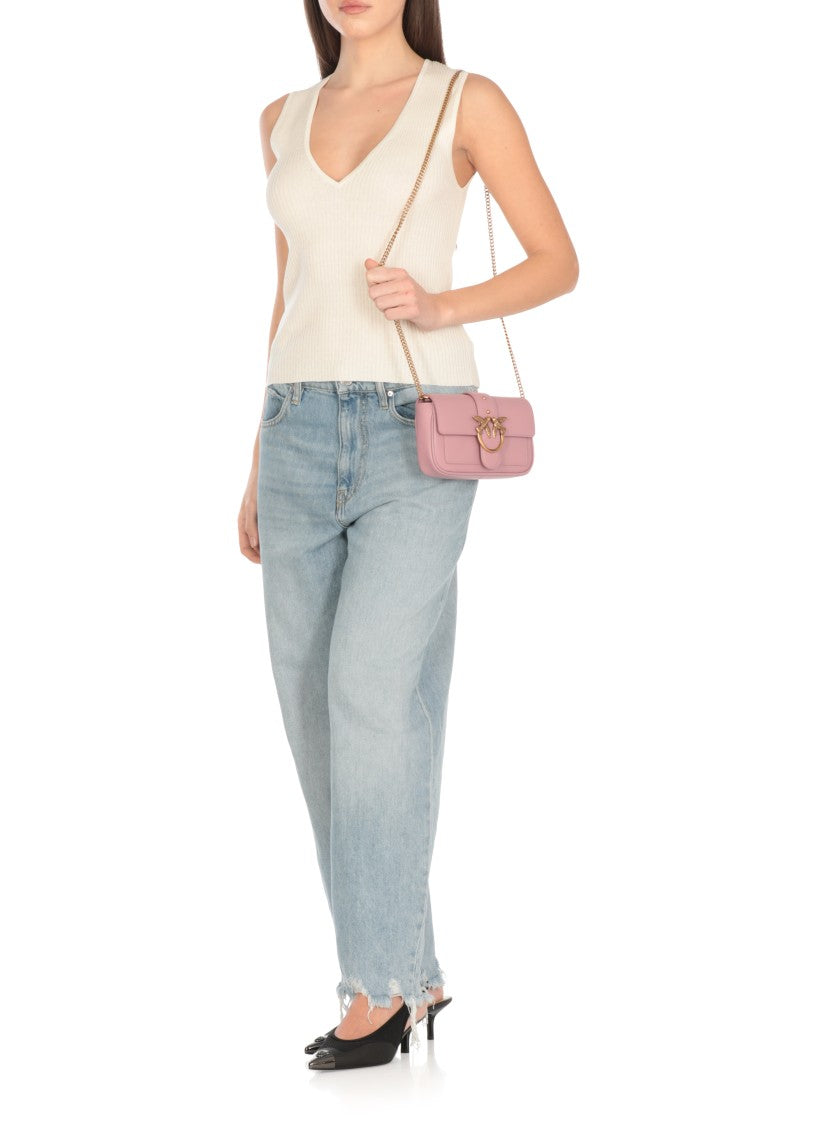 Эта фиолетовая кожаная сумка через плечо от Pinko сочетает в себе изысканный дизайн и функциональную элегантность. Клапан застегивается на магнитную кнопку и украшен эффектным металлическим логотипом Love Birds Diamond Cut спереди. Ремешок-цепочка на плечо обеспечивает универсальность и непринужденный стиль. Внутри - продуманное внутреннее пространство с карманом на молнии и прорезным карманом для надежного хранения. Внешняя сторона сумки отделана роскошной кожей с золотистой фурнитурой, воплощая в себе непреходящую роскошь.