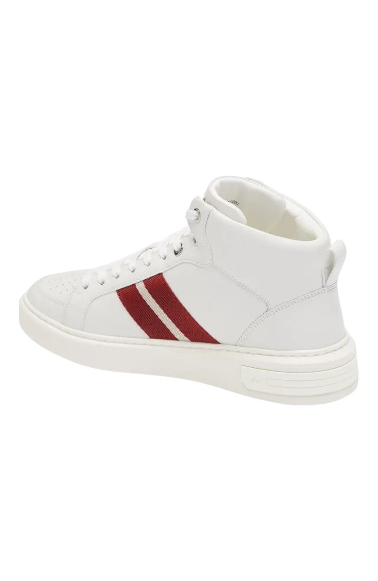 Добавьте яркого акцента в свой уличный образ с помощью мужских высоких кроссовок Bally Myles из белой телячьей кожи, которые создают эффектный образ. Эти кроссовки с мягким бортиком обеспечивают поддержку голеностопа, идеально подходящую для прыжков, и идеально подходят как для стильного образа, так и для комфорта на площадке и за ее пределами.