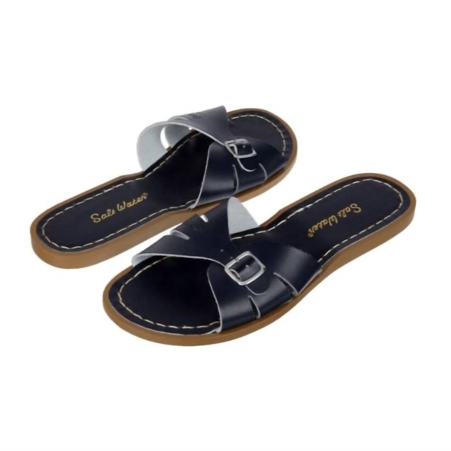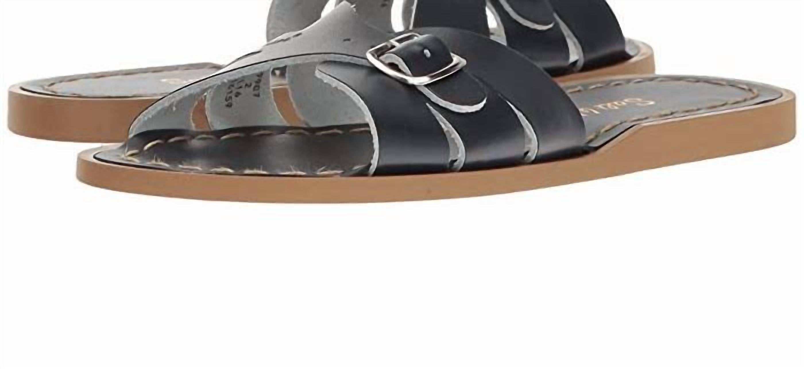 Струящиеся платья, укороченные брюки и даже комбинезоны... эти сандалии подойдут ко всему! Дополните свой летний гардероб классическими женскими сандалиями-шлепанцами от Salt Water Sandals, которые сочетают в себе стиль и функциональность. Эти черные сандалии с верхом и подкладкой из натуральной кожи, устойчивыми к истиранию и водостойкими, обеспечивают дышащий комфорт. Благодаря антикоррозийным латунным пряжкам и открытому носку, они идеально подходят для ношения как в воде, так и на суше. Легко ухаживать за ними благодаря прошитой вручную нескользящей литой резиновой подошве для дополнительной прочности.