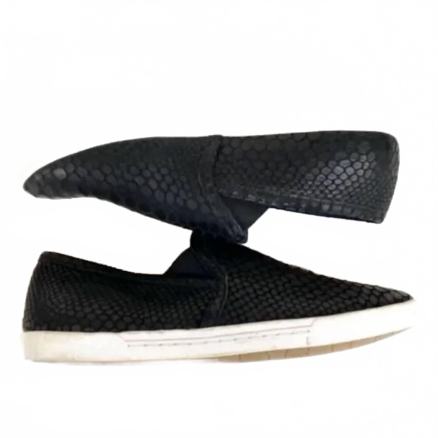 Милые, функциональные и удобные. Эти кроссовки отвечают всем требованиям. Кроссовки Joie Kidmore 35-го размера (эквивалент 4,5/5) выполнены из черной кожи с тиснением под змею. Резиновая подошва обеспечивает прочность и комфорт. Кроссовки имеют экзотическую, слегка глянцевую текстуру и подойдут для девочек 2,5-3-го размера.