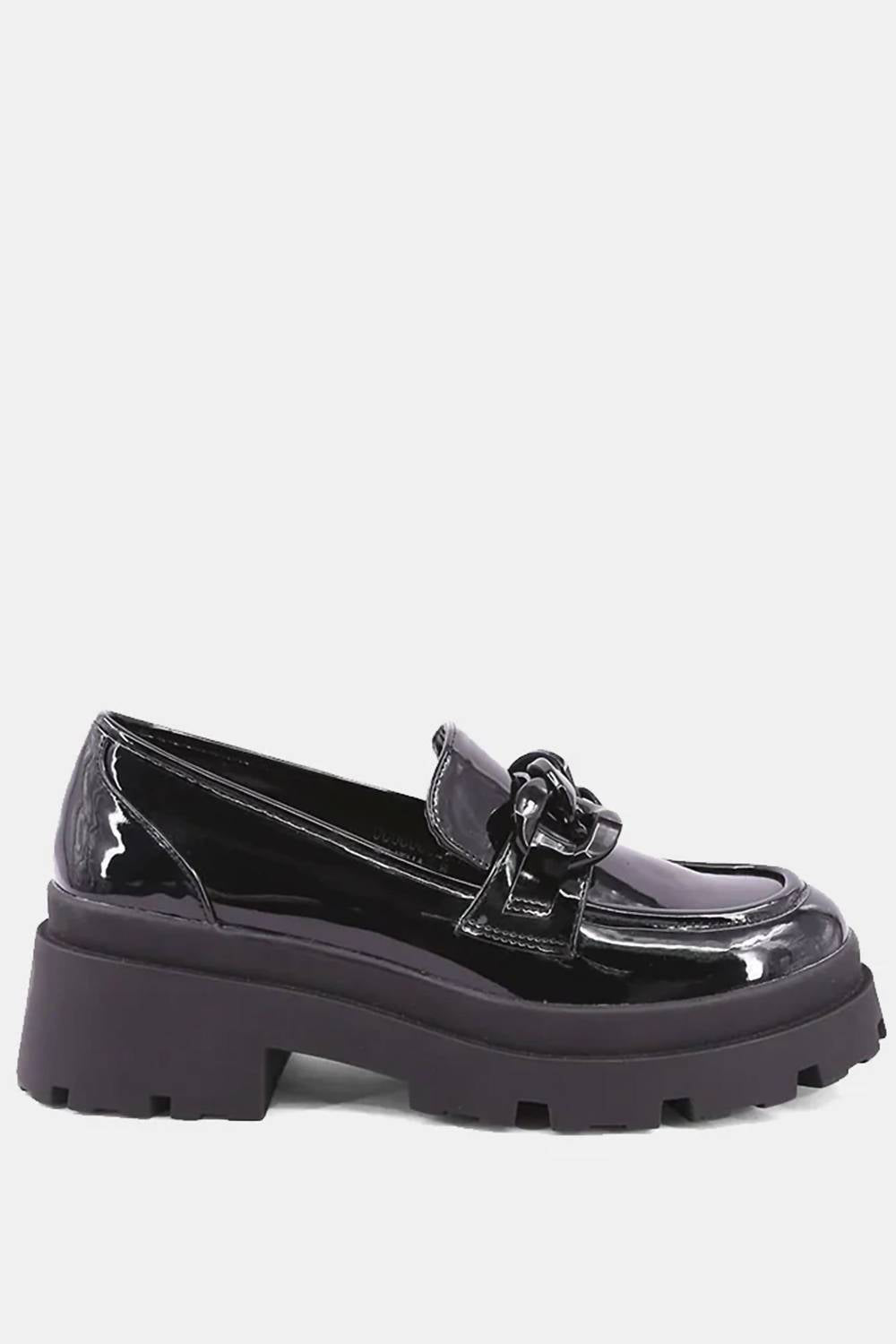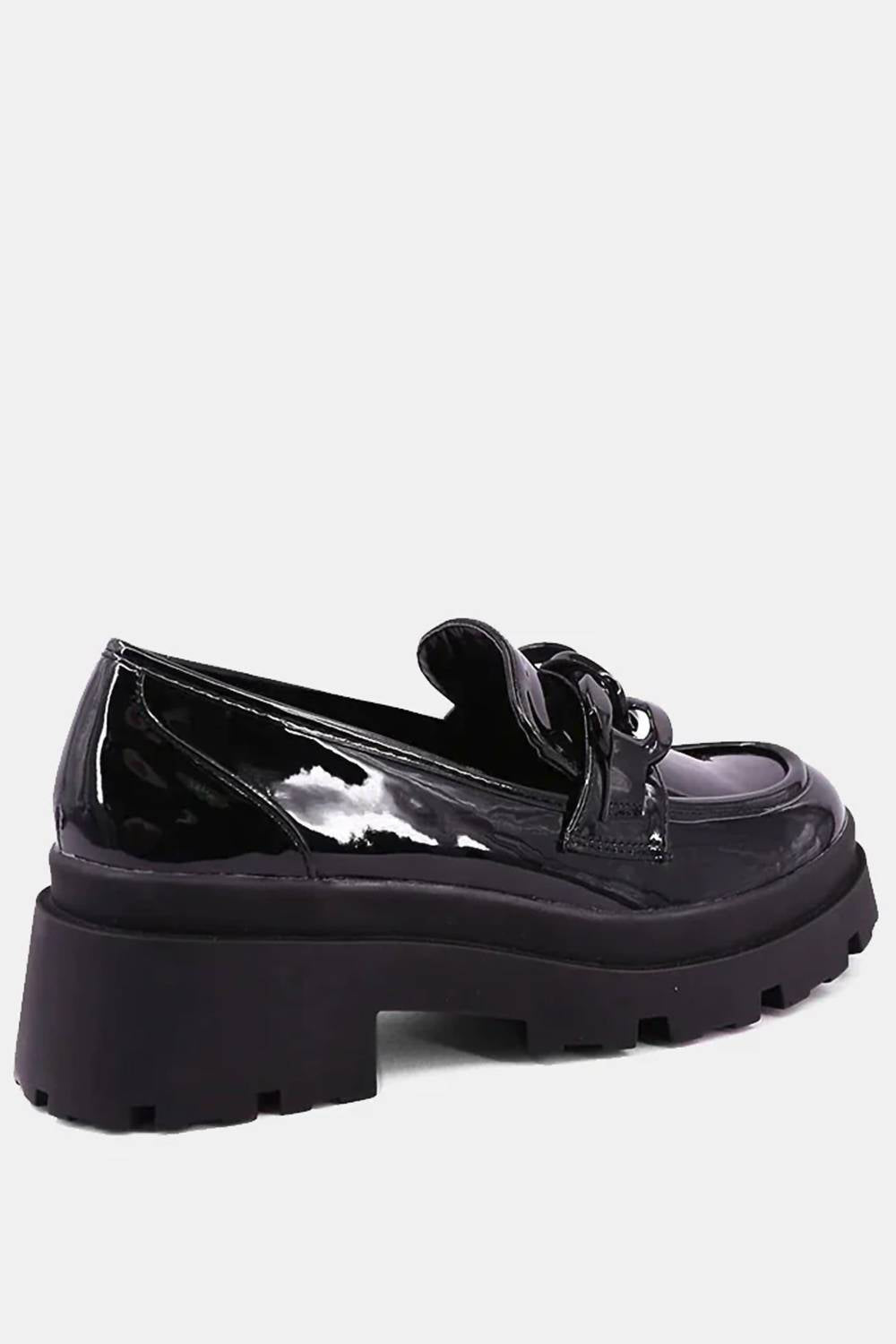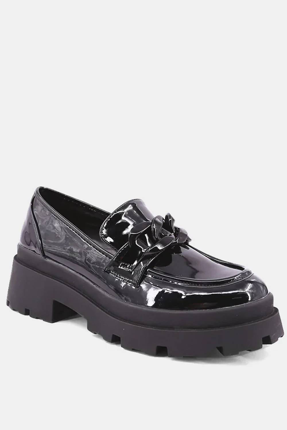 Элегантная, но женственная интерпретация классических лоферов. Представляем лоферы Talitha от SHU SHOP - шикарный привет моде 90-х в современной интерпретации. Эти лоферы с круглым носком выполнены в элегантном черном цвете из искусственной лакированной кожи, что притягивает взгляд. Эффектная ретро-подошва и отделка цепочками делают эти туфли ярким дополнением к любому гардеробу. Они идеально подходят для того, чтобы добавить гламурности вашему образу, и станут универсальным дополнением к ярким ансамблям.