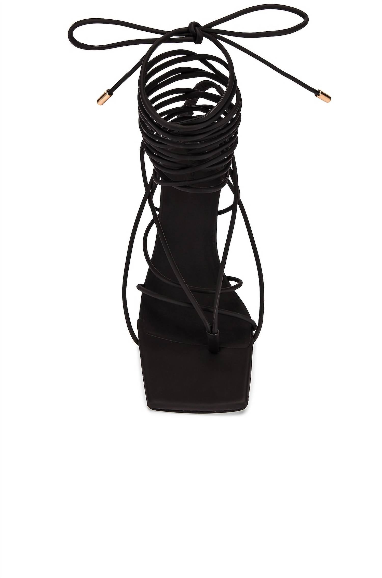Босоножки на шнуровке. Матовая прорезиненная экокожа. Обхват щиколотки с завязкой. Мысок с ремешком. Каблук из резины. Квадратный носок. 100% лакированная кожа.