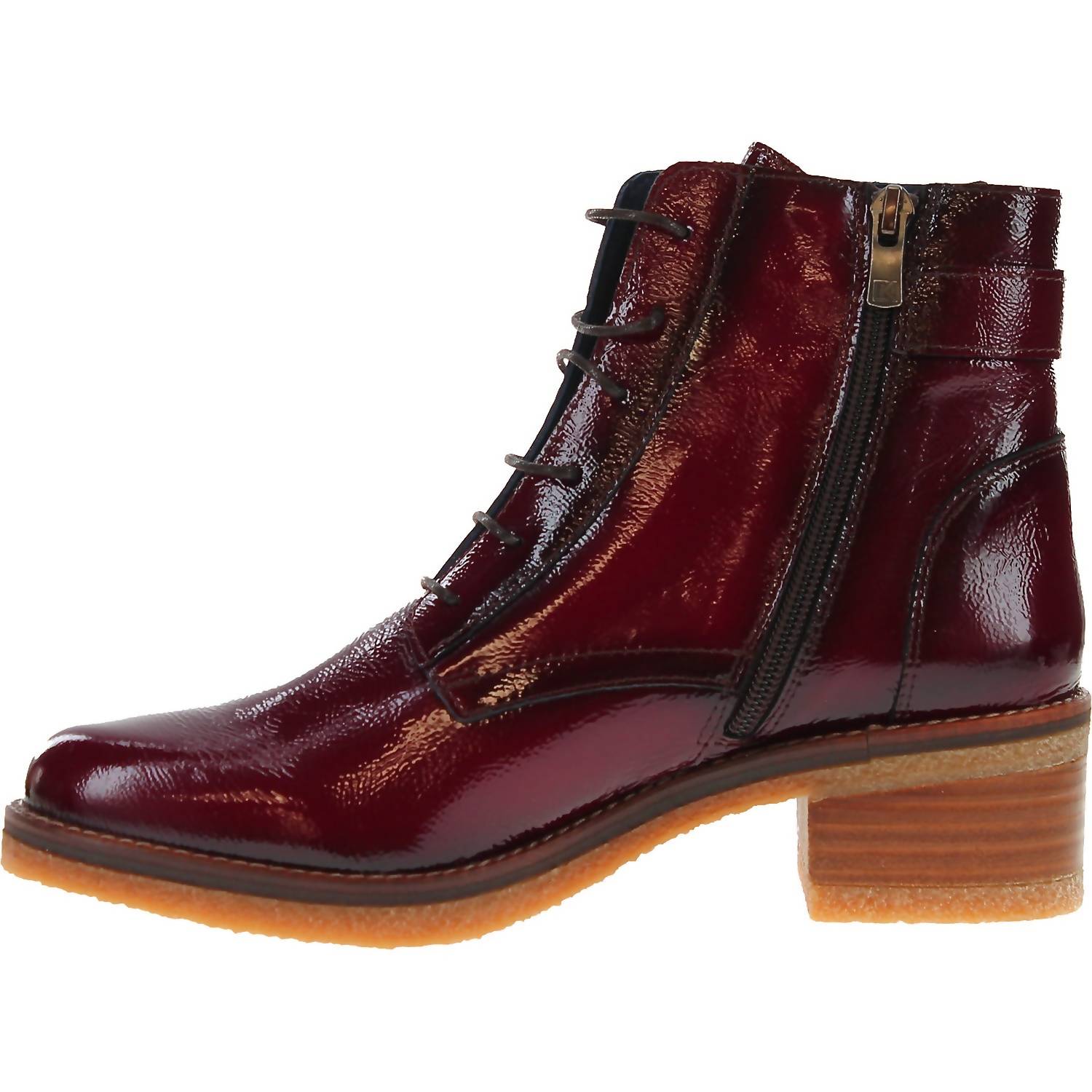 Представляем ботильоны Lucero от Fluchos - изысканный выбор как для нарядных, так и для повседневных случаев. Эти ботильоны с верхом из высококачественной лакированной кожи и блочным каблуком высотой 5 см дополнены стильными круглыми шнурками и застежкой-молнией для удобства надевания и снимания. Эти ботинки, родом из Испании, отличаются внутренней частью из искусственной кожи с влагоотталкивающим покрытием, дышащей стелькой из микрофибры и прочной резиновой подошвой. Яркий красный миндалевидный носок делает их эффектным аксессуаром.