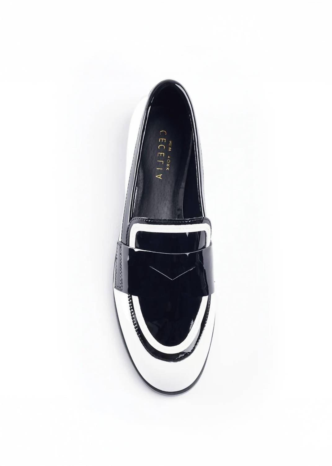 Лоферы настолько универсальны, что их можно носить практически с чем угодно. Представляем лоферы Kali от CECELIA NEW YORK - элегантное дополнение к вашему гардеробу благодаря изысканному двухцветному дизайну из черно-белой лакированной кожи. Эти туфли с круглым носком, кожаным верхом, кожаной подкладкой и искусственной подошвой предлагают идеальное сочетание стиля и комфорта. Благодаря блочному каблуку высотой 2,5 см и конструкции слип-он, эти туфли удобны для современной женщины. Посадка - размер в размер.