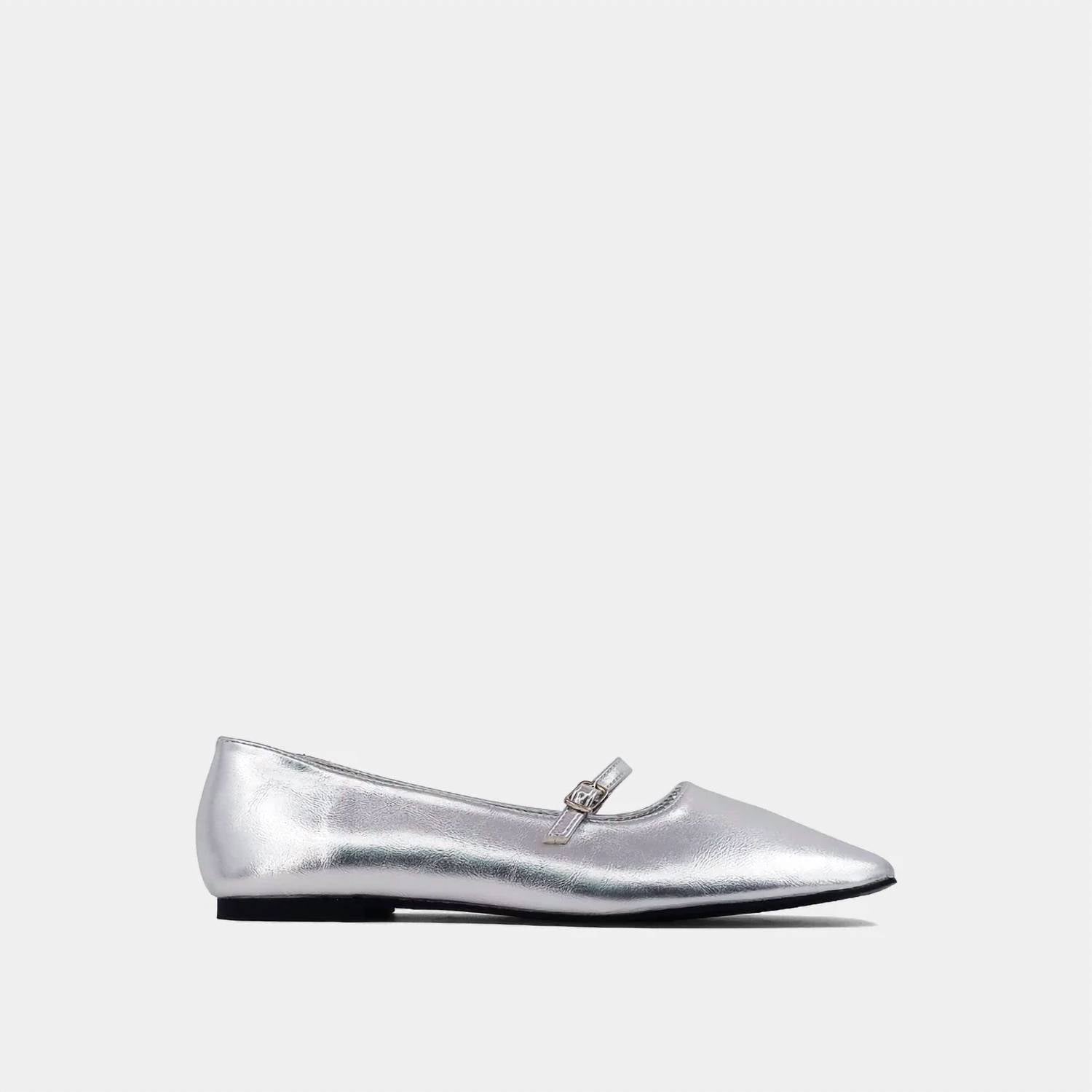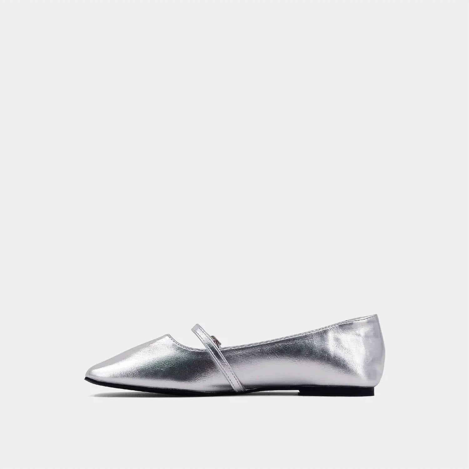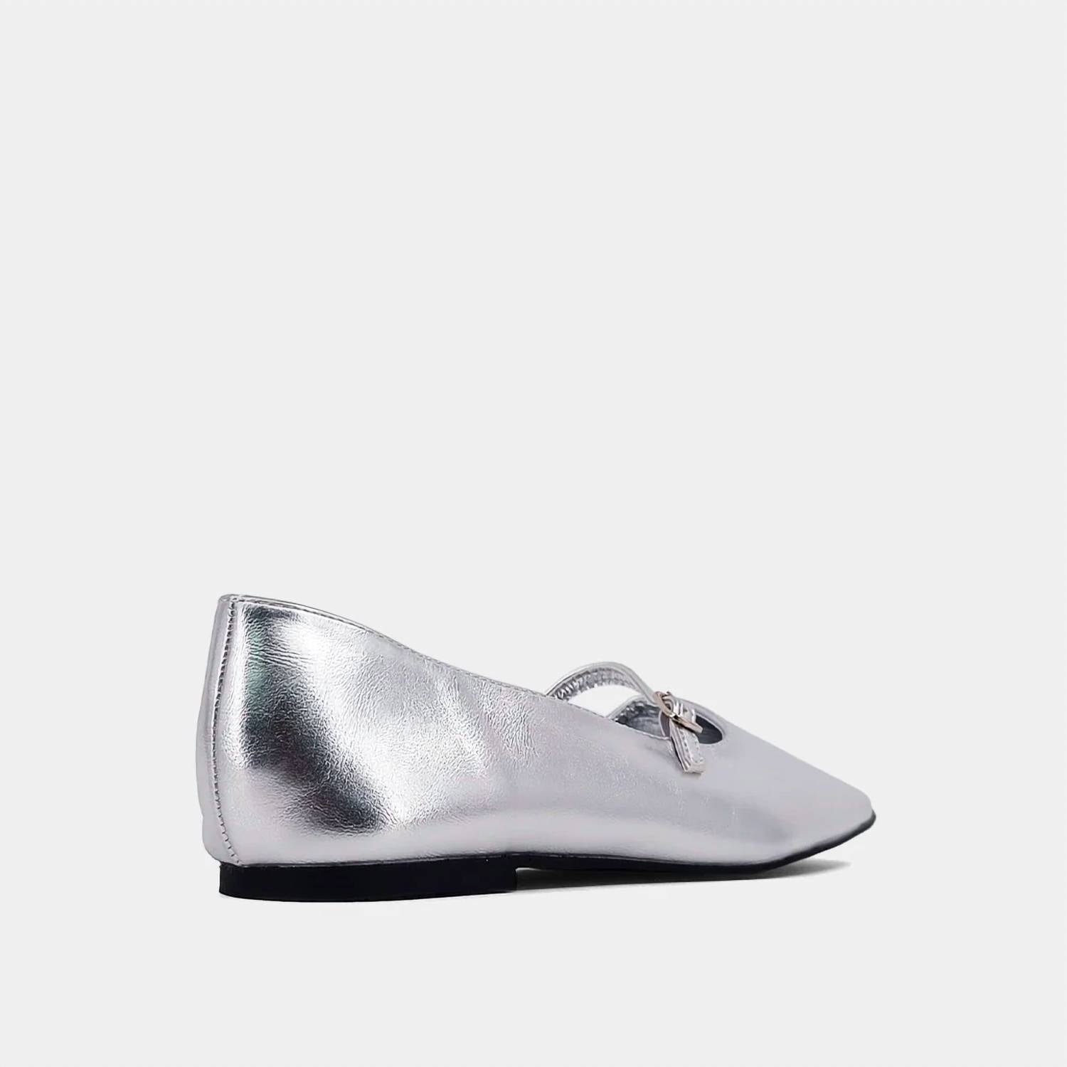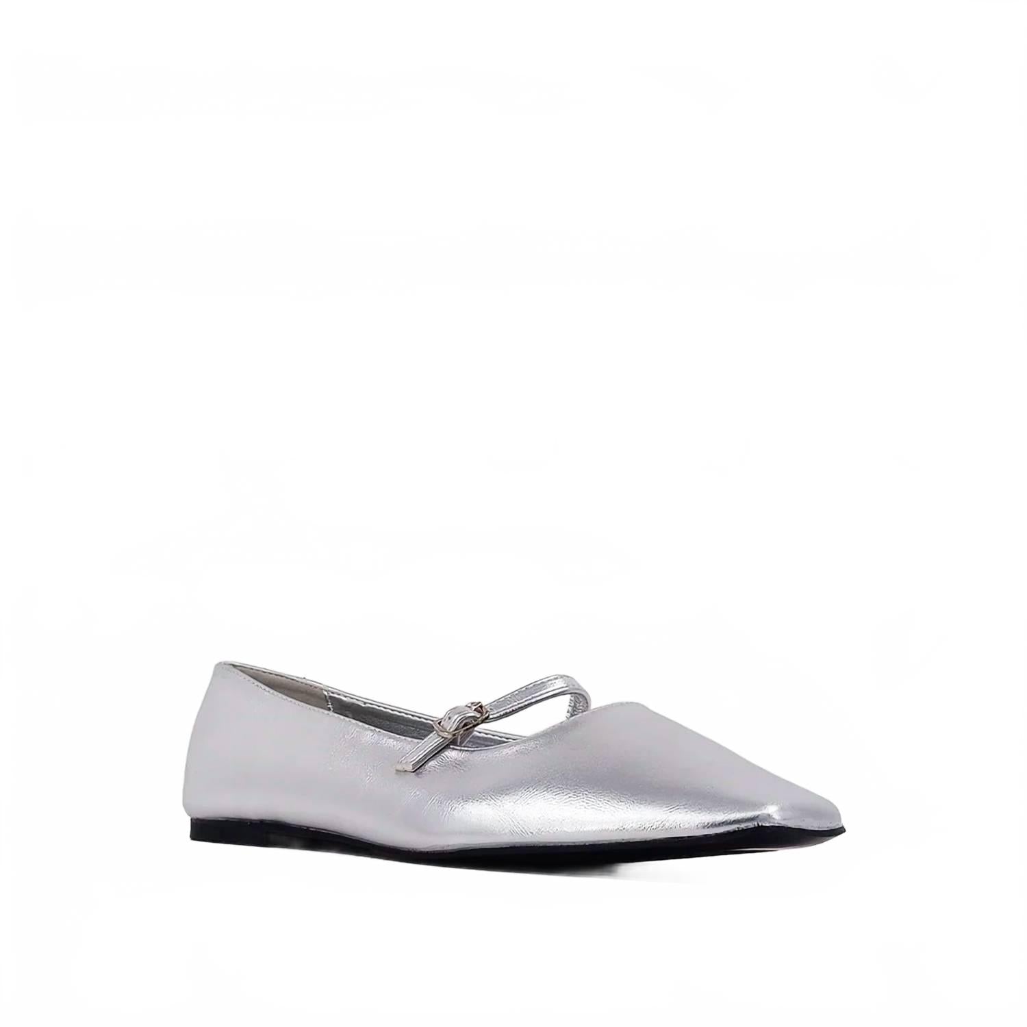 Шикарное дополнение к любому образу. Изготовлены из мягкой искусственной кожи с металлическим эффектом изысканного серебристого оттенка. Силуэт «Мэри Джейн» с элегантным квадратным носком и тонким ремешком на пряжке. Плоский каблук. Идеально подходят для коктейльных вечеринок или новогодних посиделок. Следуйте тренду Y2K с этими изысканными балетками, которые идеально подойдут для создания элегантного образа весной.